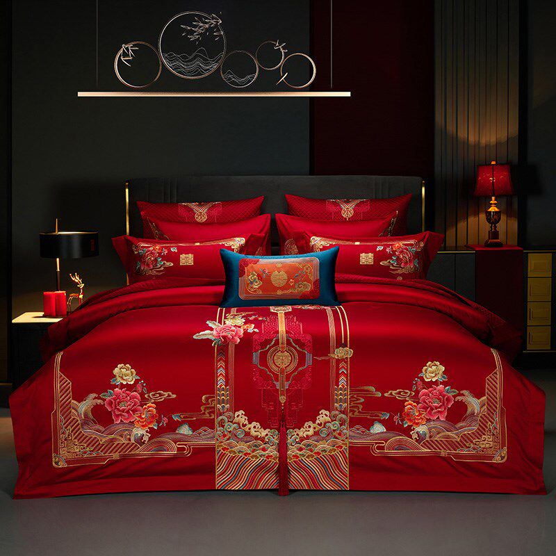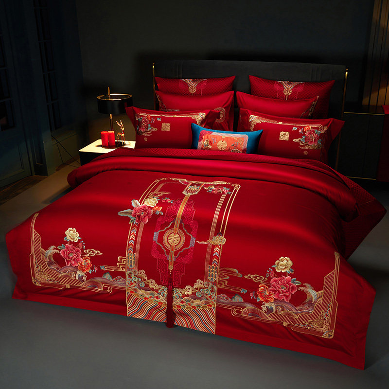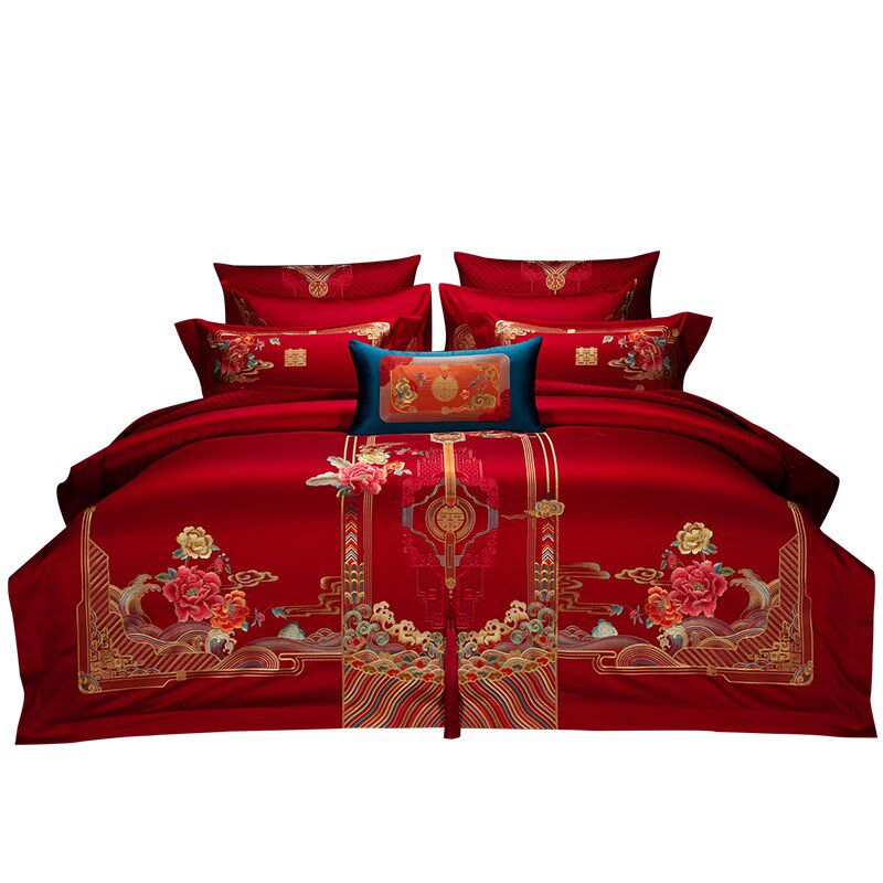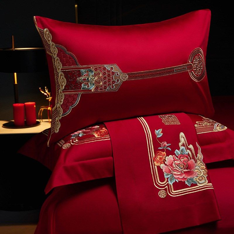 高级感结婚床上四件套婚庆 160支全棉新婚大红色床单被套喜庆