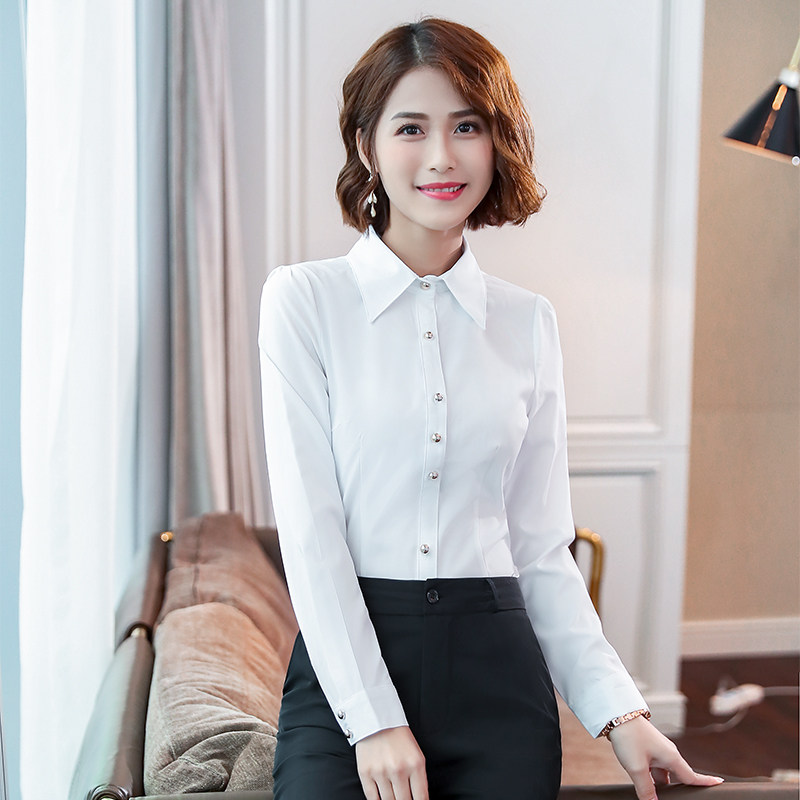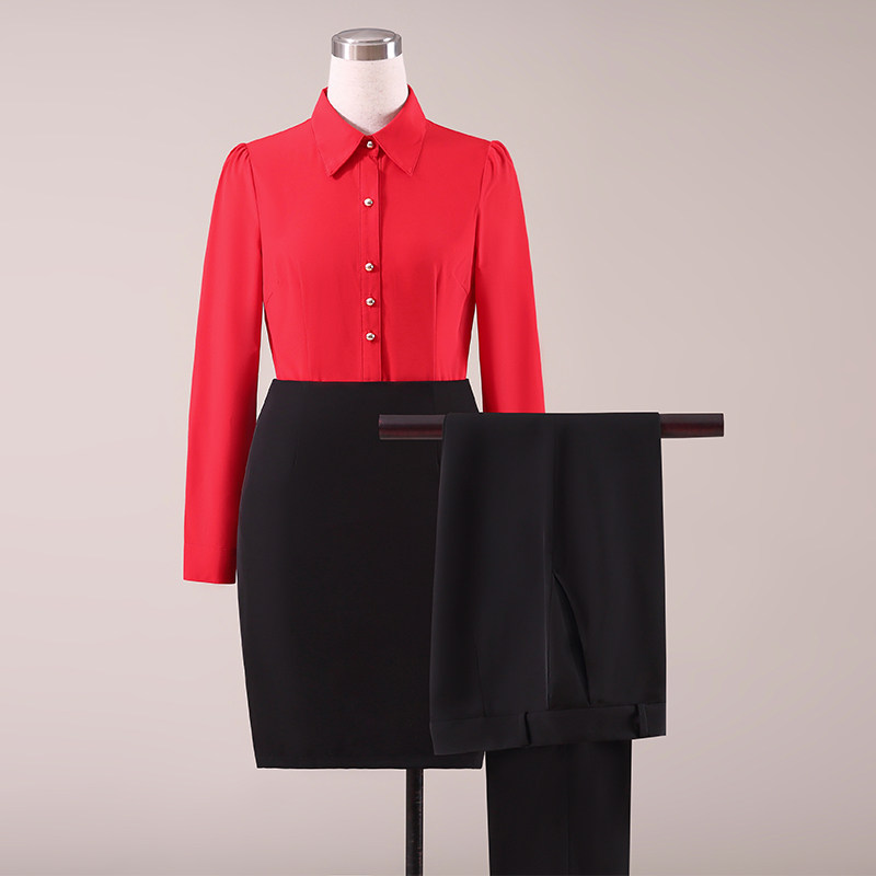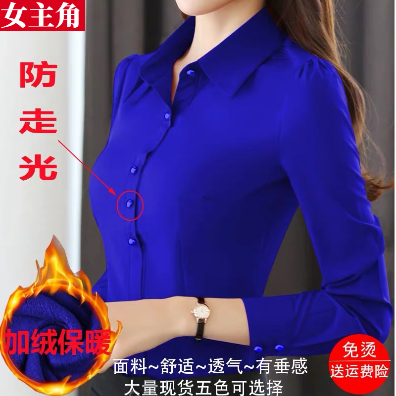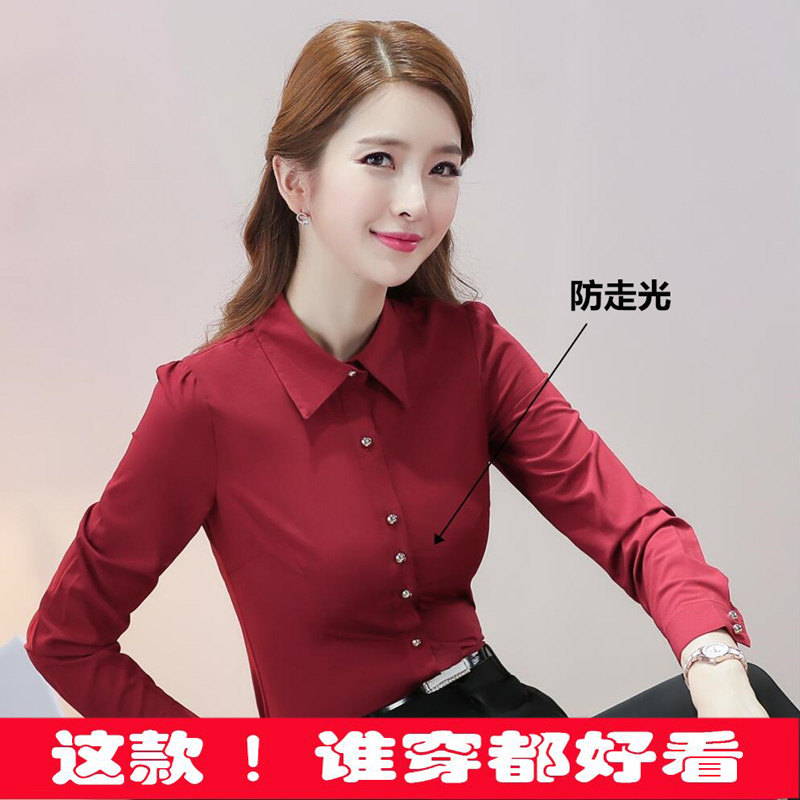 白衬衫女长袖韩范雪纺2025秋冬新款修身工衣打底红色OL职业装衬衣