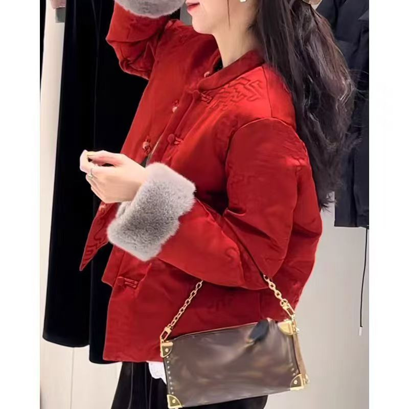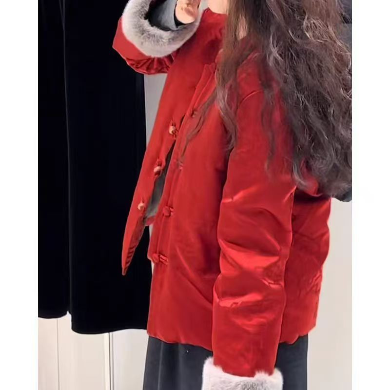 新中式国风红色棉服外套女2025新款冬季小个子短款唐装年轻款棉衣