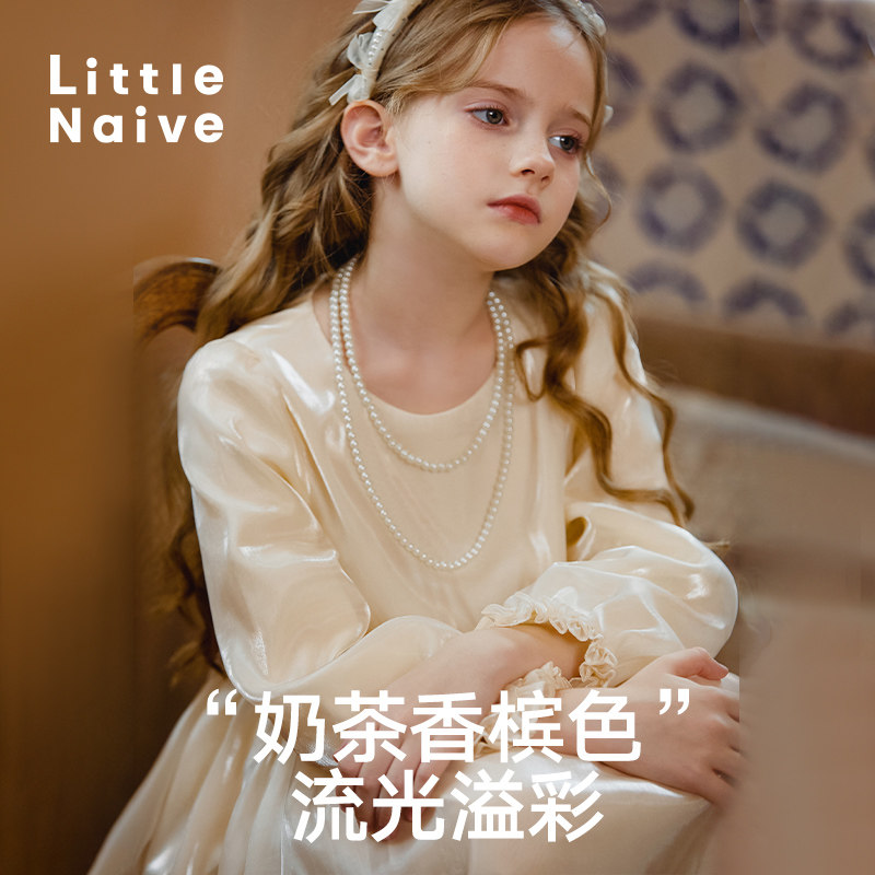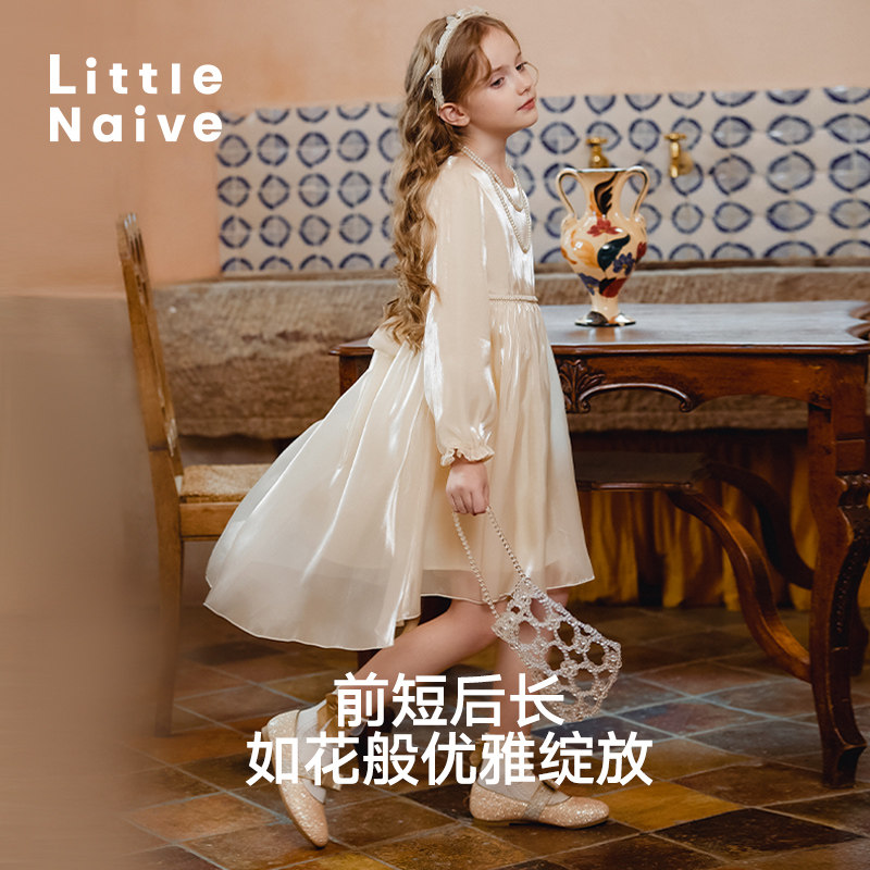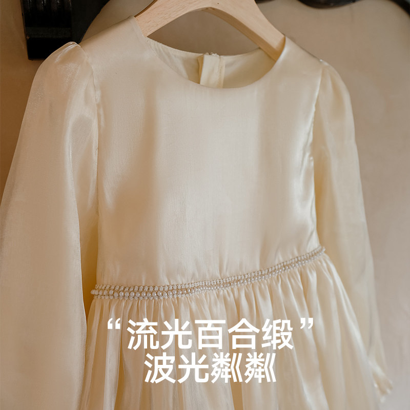 LittleNaive儿童礼服裙春秋装钢琴演出连衣裙生日女童公主裙白色