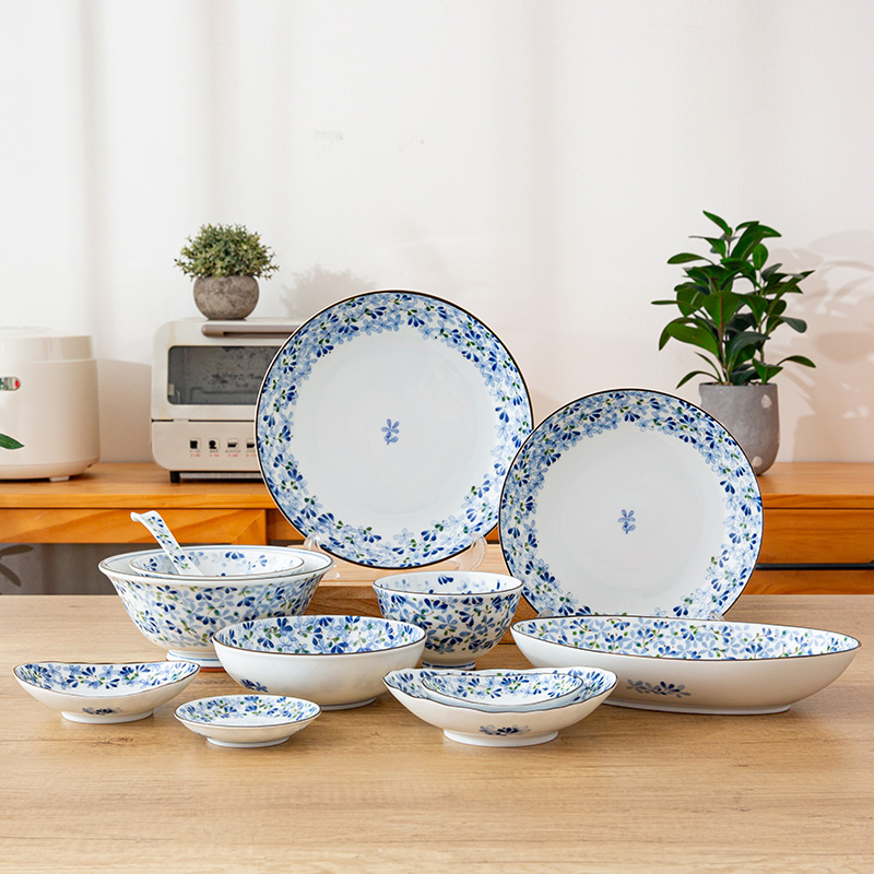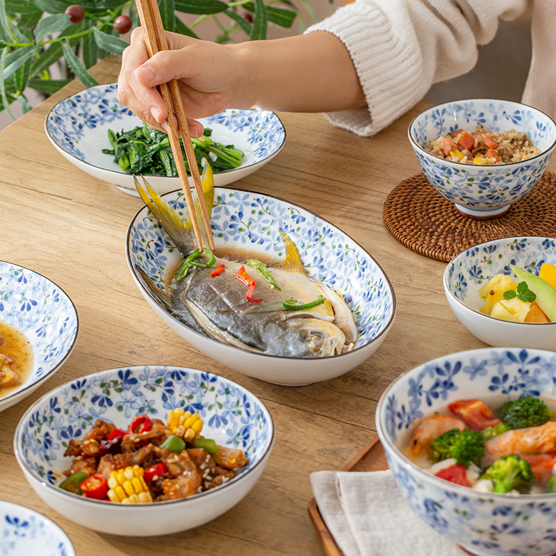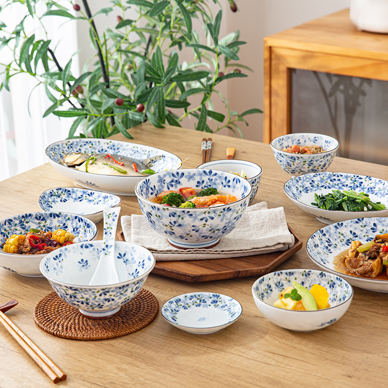 光峰小蓝芽碗日本进口陶瓷饭碗汤碗面碗大碗盘子家用日式餐具小碗