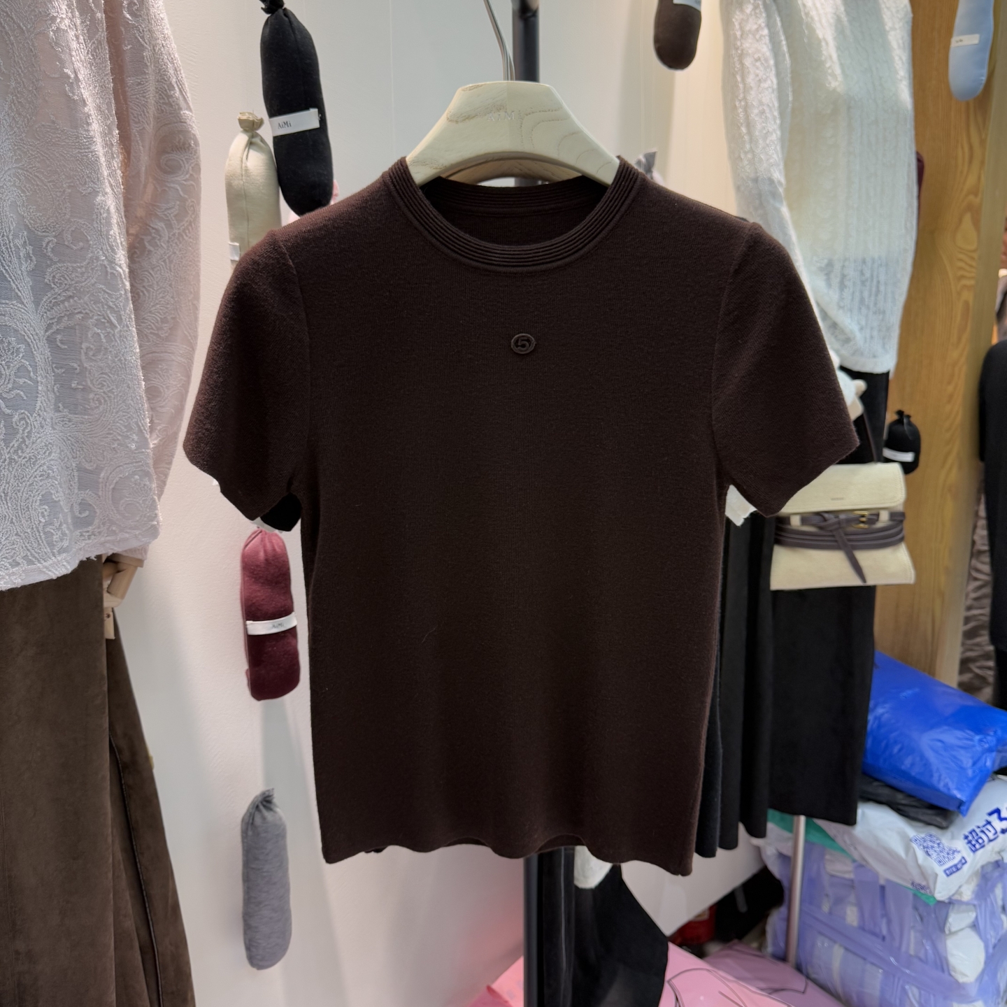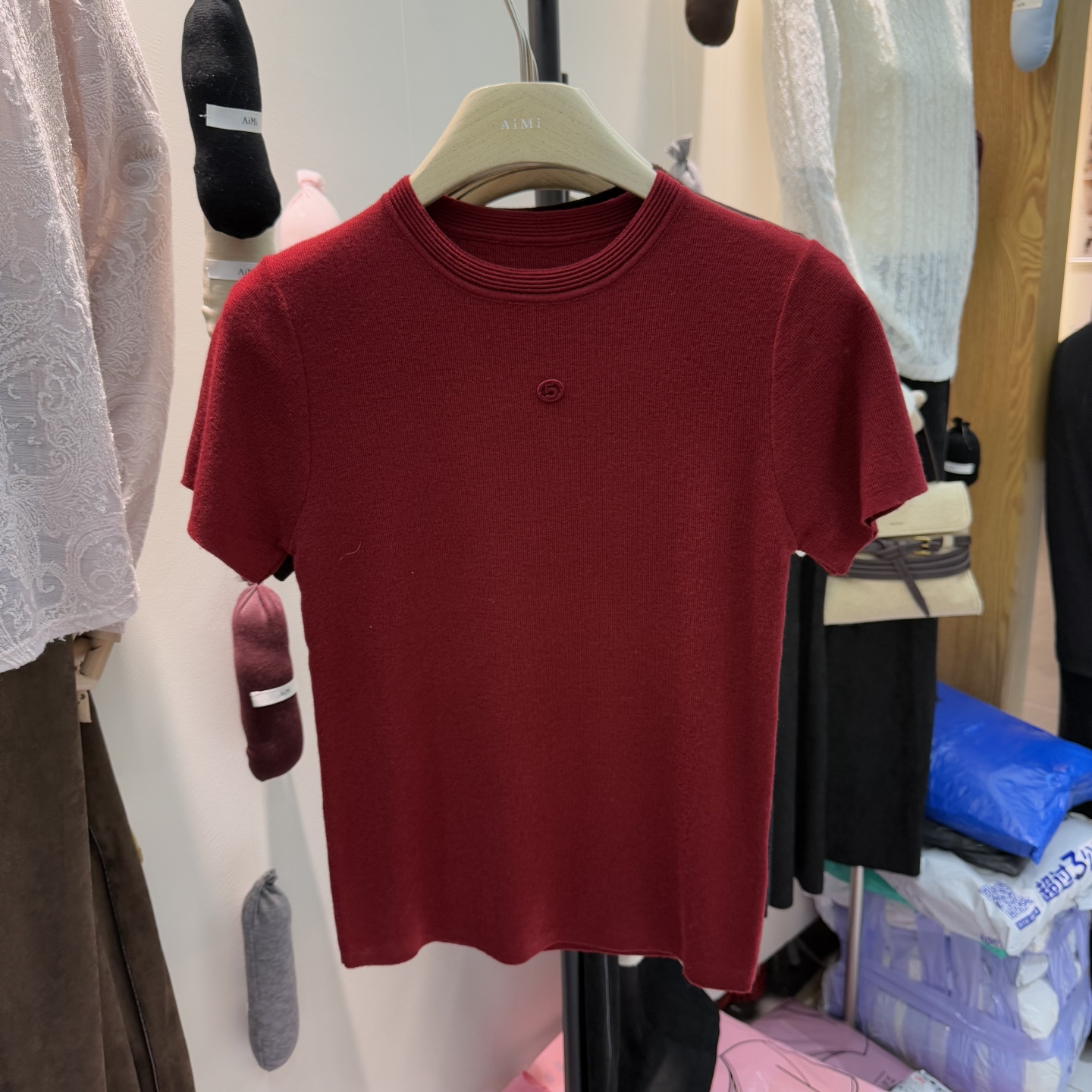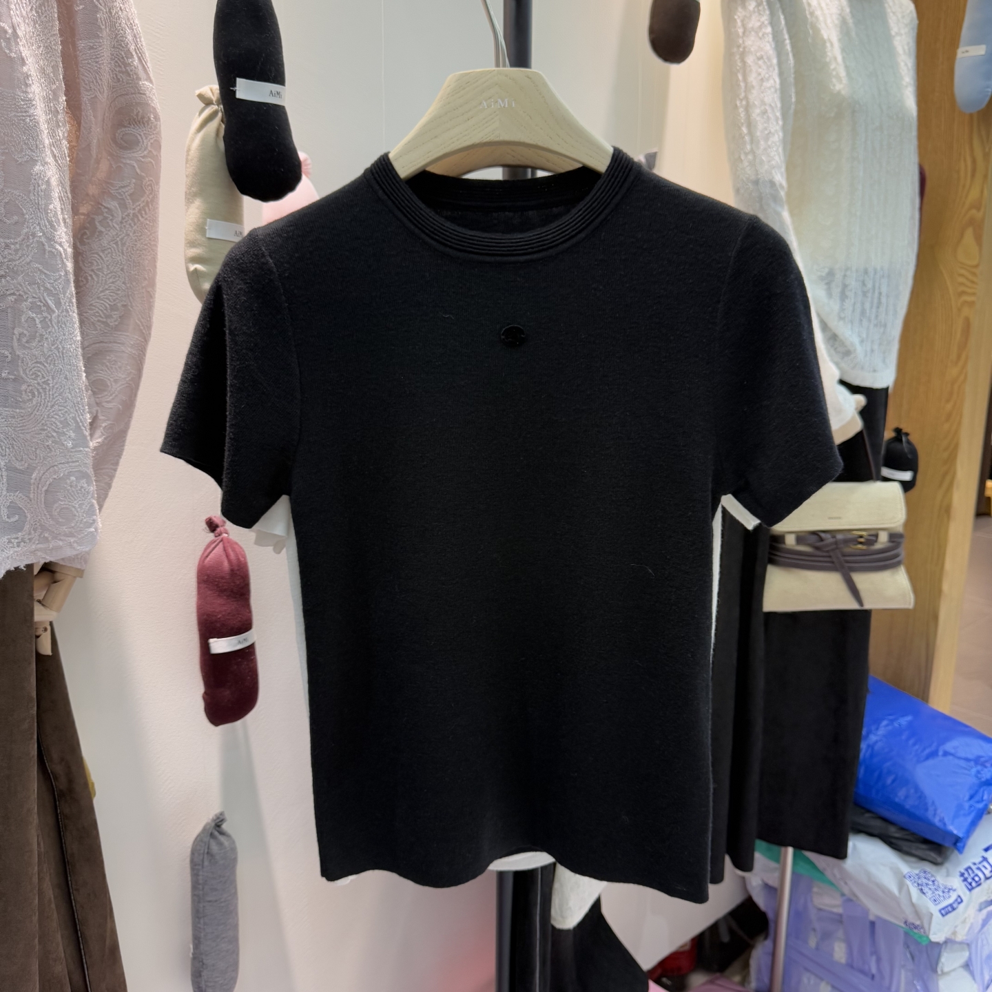 AiMi2025秋季新款韩版圆领修身显瘦短袖针织衫女内搭打底衫上衣潮