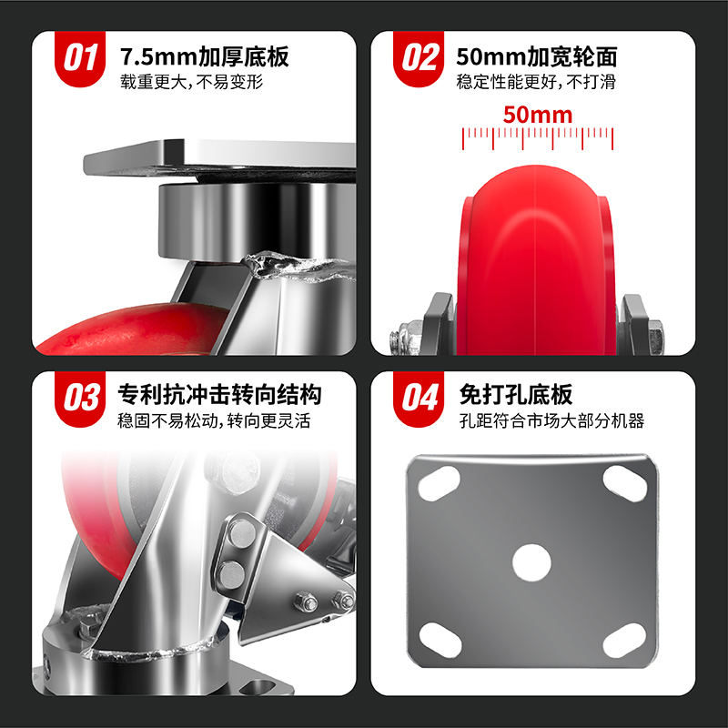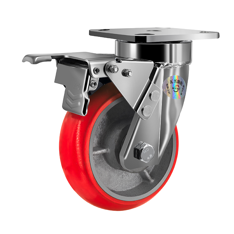 抗冲击万向轮铁芯PU聚氨酯8寸6寸万向轮带刹车浙江瓦兴脚轮可牵引