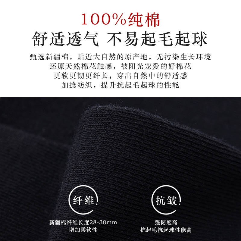 足下途100%纯棉男女吸汗黑色袜子