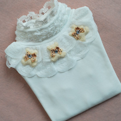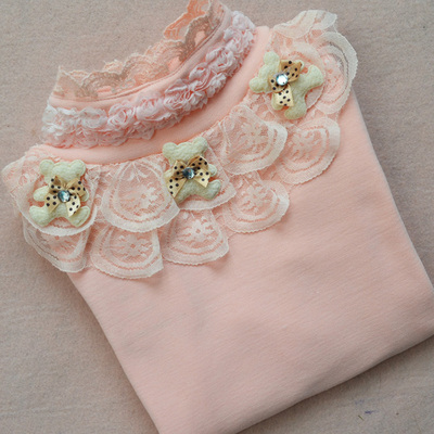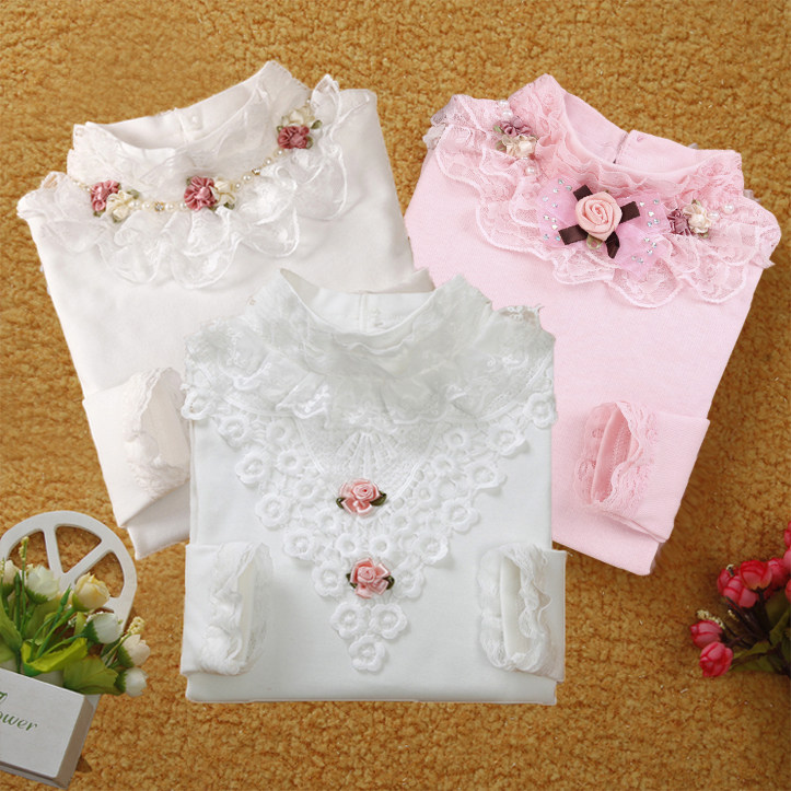女童长袖T恤春秋新款韩版潮公主儿童上衣蕾丝高领加绒加厚打底衫