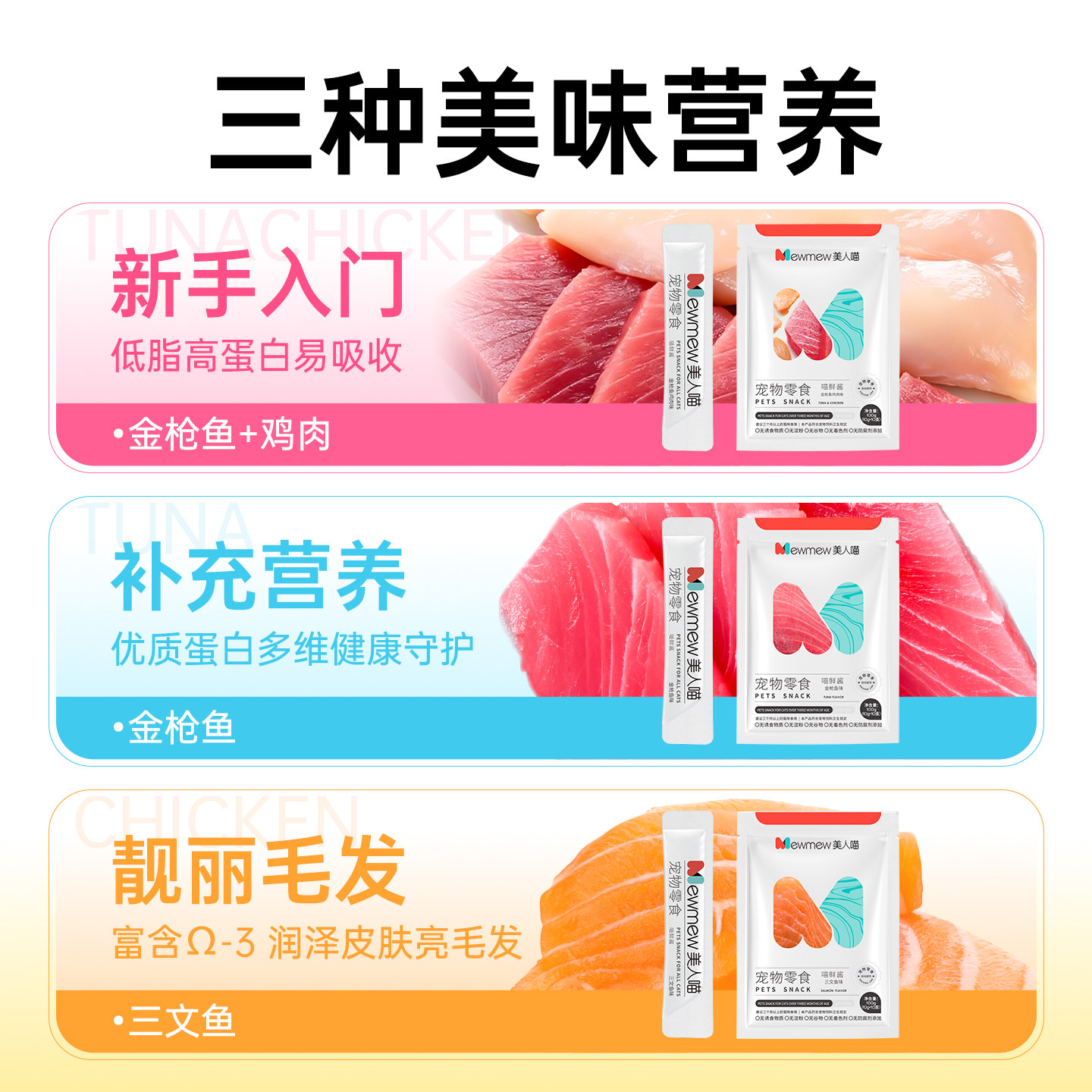 美人喵猫条猫咪零食营养补水成幼猫罐头小鱼干妙鲜湿粮包无诱食剂