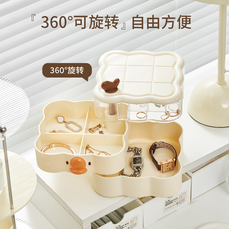 首饰盒高级感螺钿饰品耳钉项链戒指珠宝手镯大容量双层旋转收纳盒