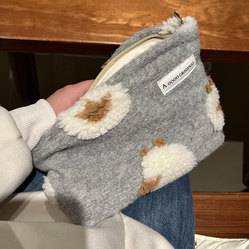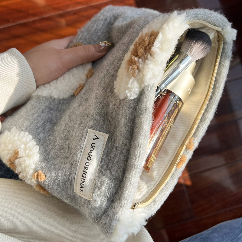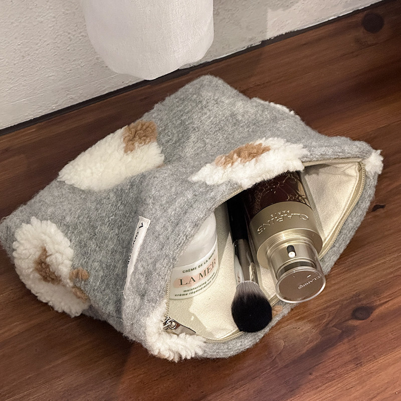 秋冬毛呢大容量化妆包羊羔毛毛绒护肤品收纳袋相机包内胆旅行洗漱