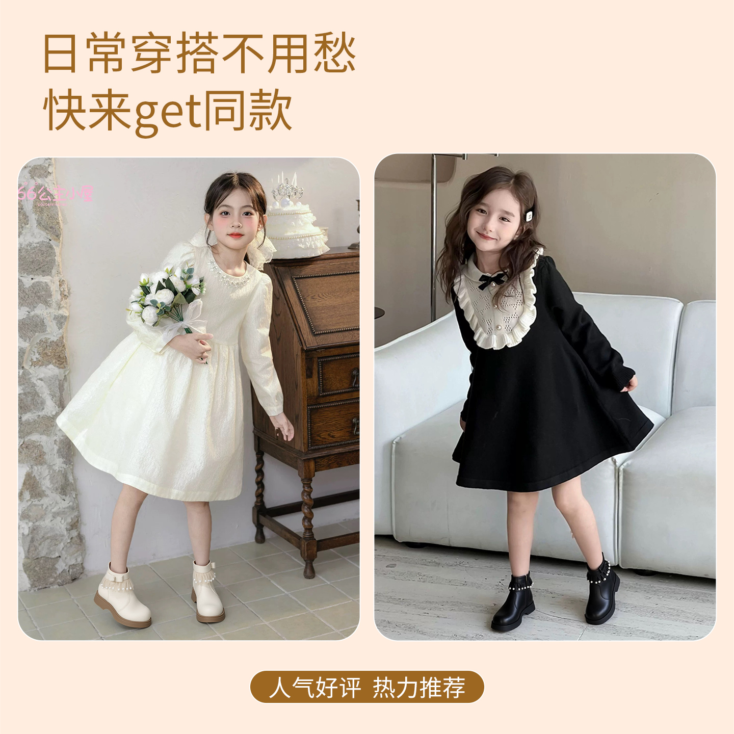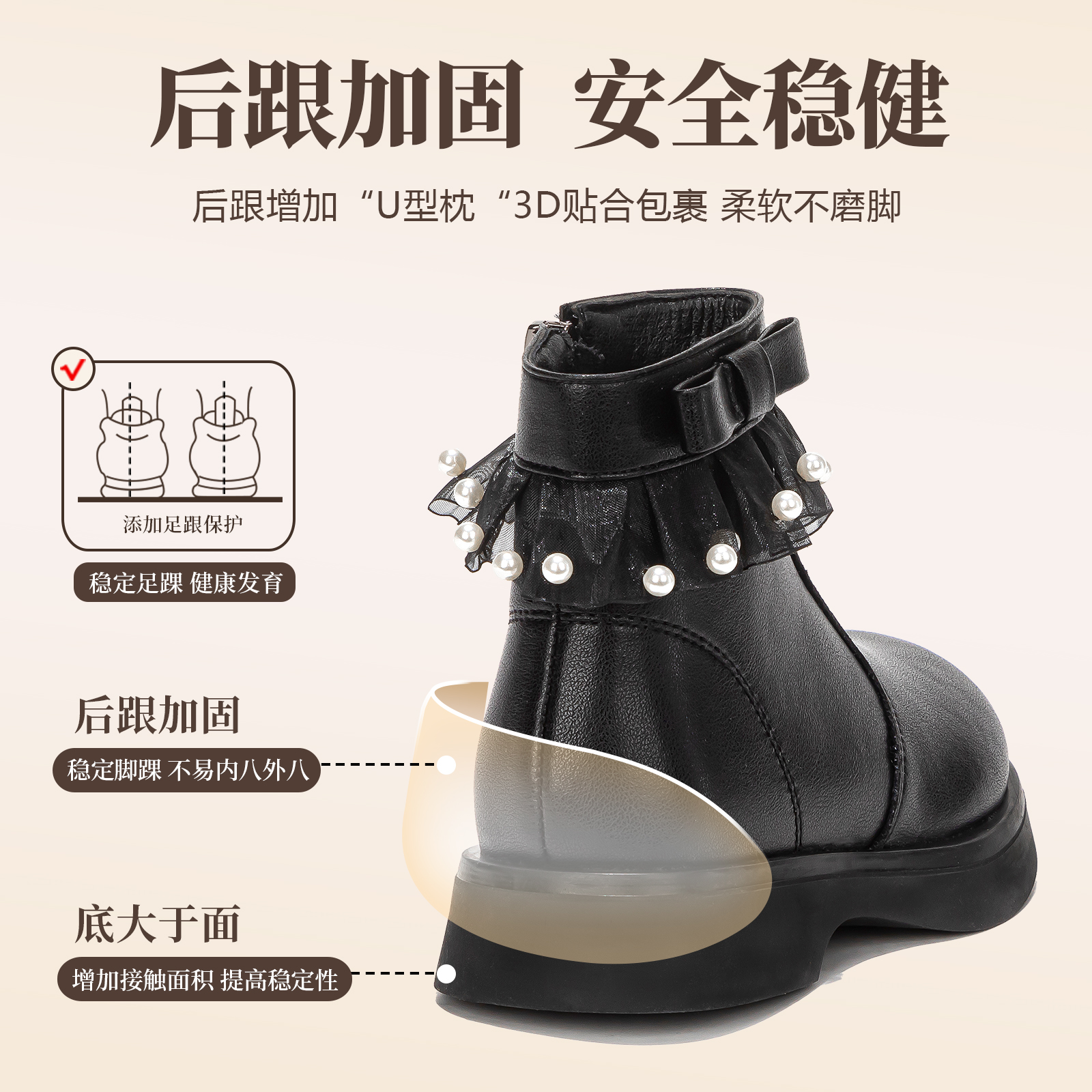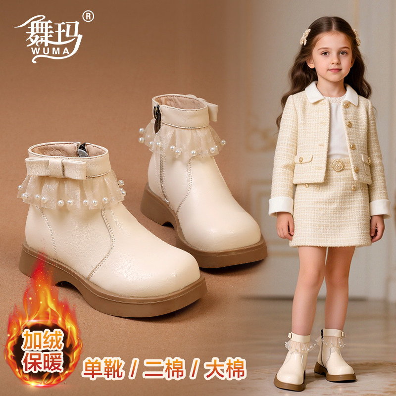 舞玛女童靴子真皮公主短靴2025新款加绒二棉冬季女宝宝儿童马丁靴
