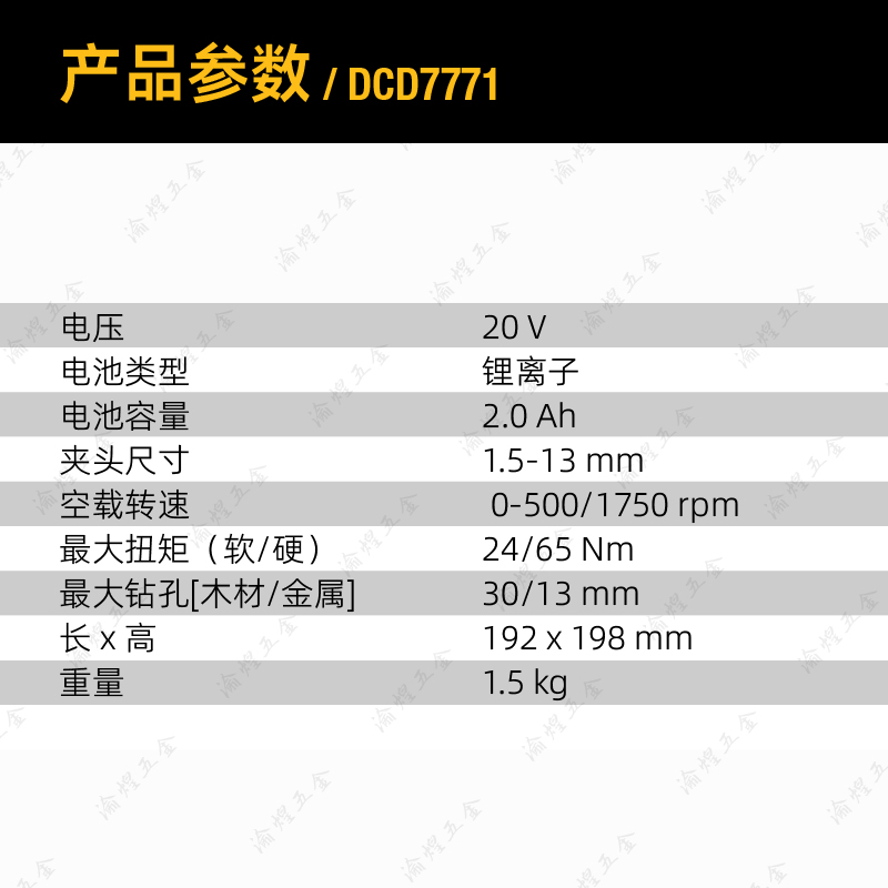 得伟DCD7771/771D2锂电充电手钻多功能手枪钻手电转电起子机德伟