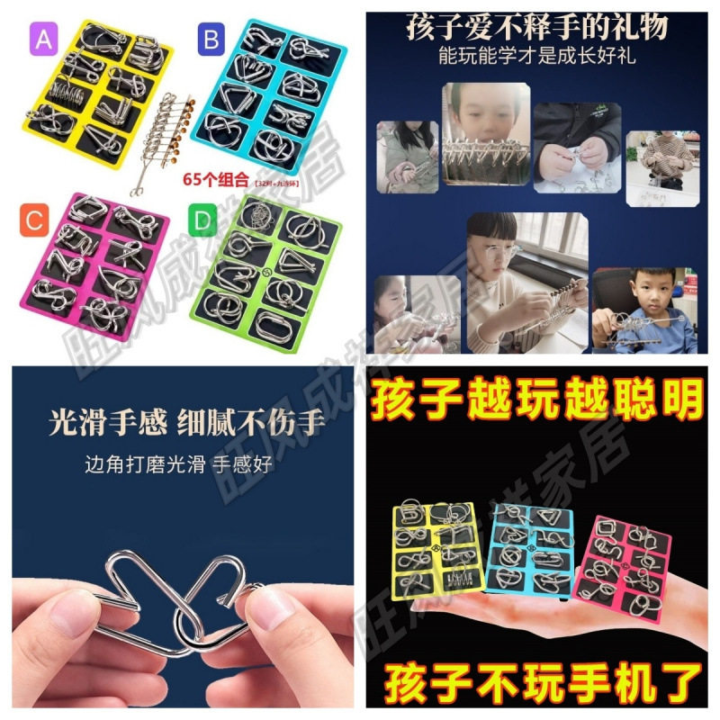 紫静藤甄选九连环智力扣儿童益智解扣24件套学生锻炼手脑解环玩具