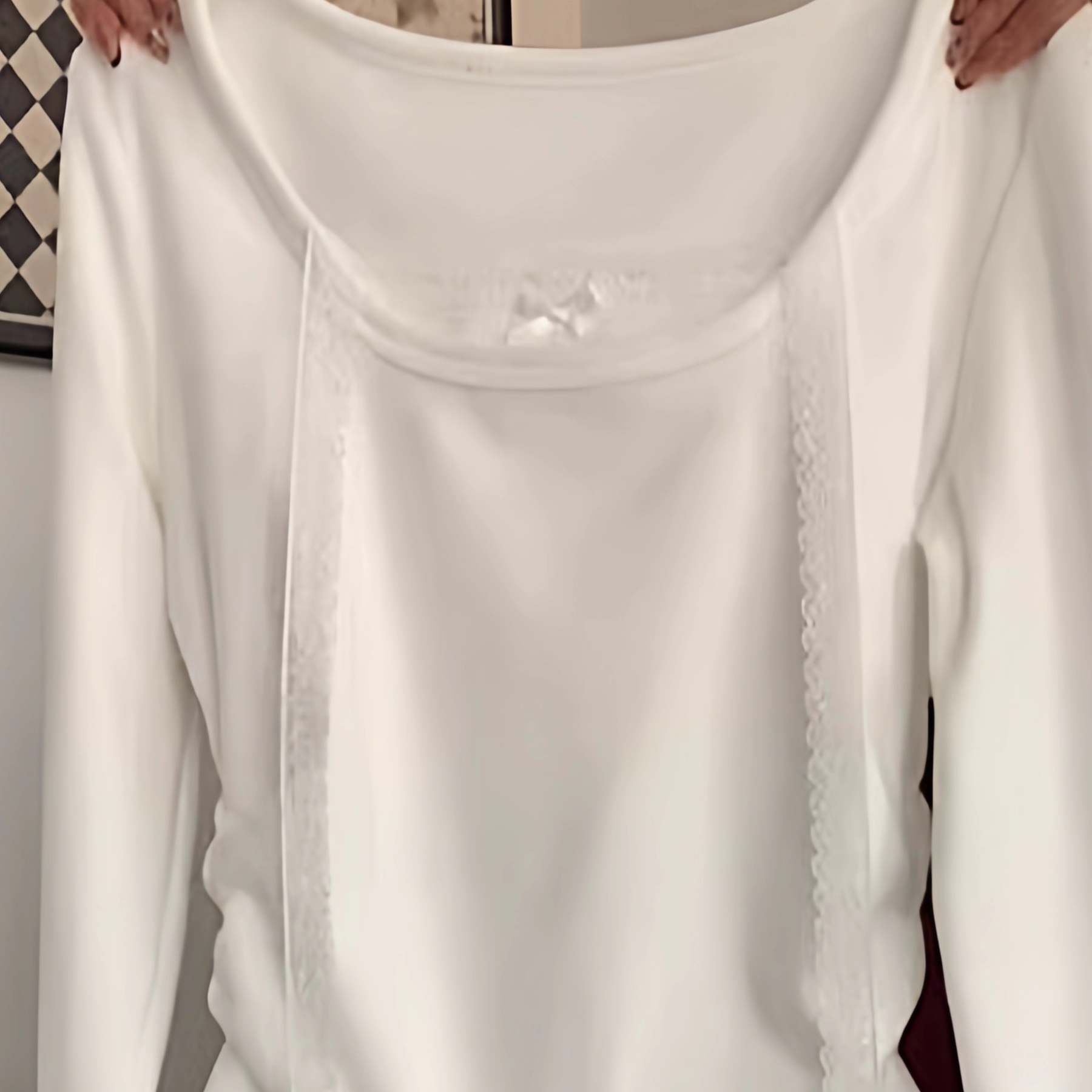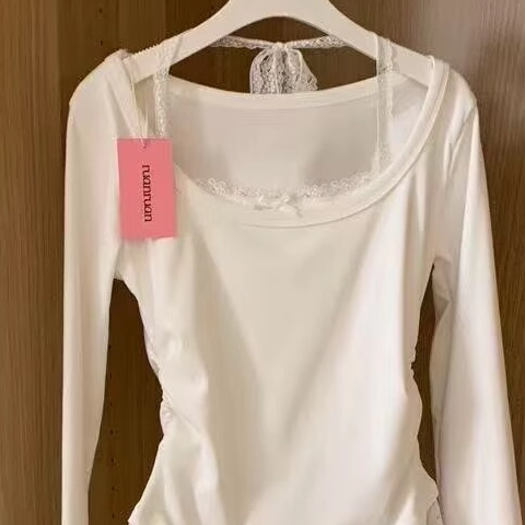 假两件挂脖长袖t恤女蕾丝屁帘打底衫小众设计感白色内搭叠穿上衣