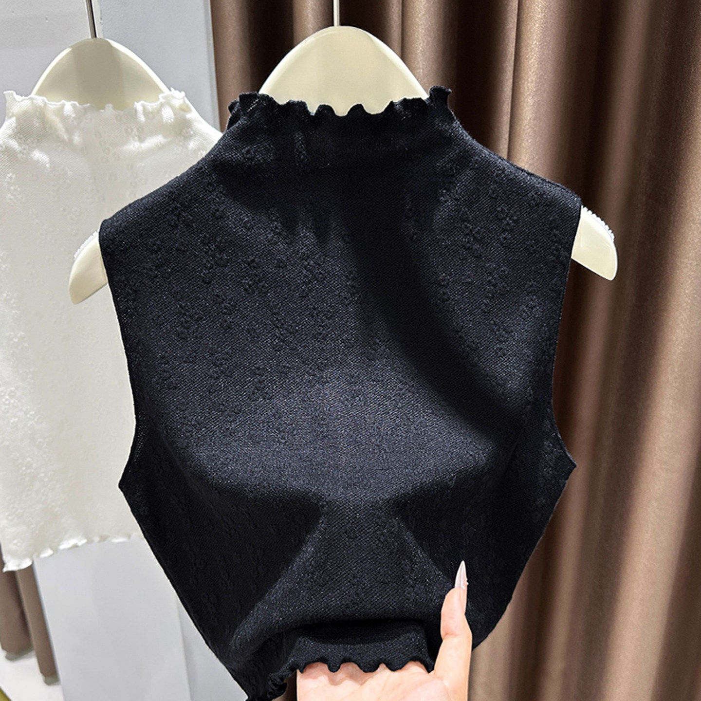 蕾丝假领子打底衫女早秋季半高领内搭叠穿背心无袖百搭木耳边上衣