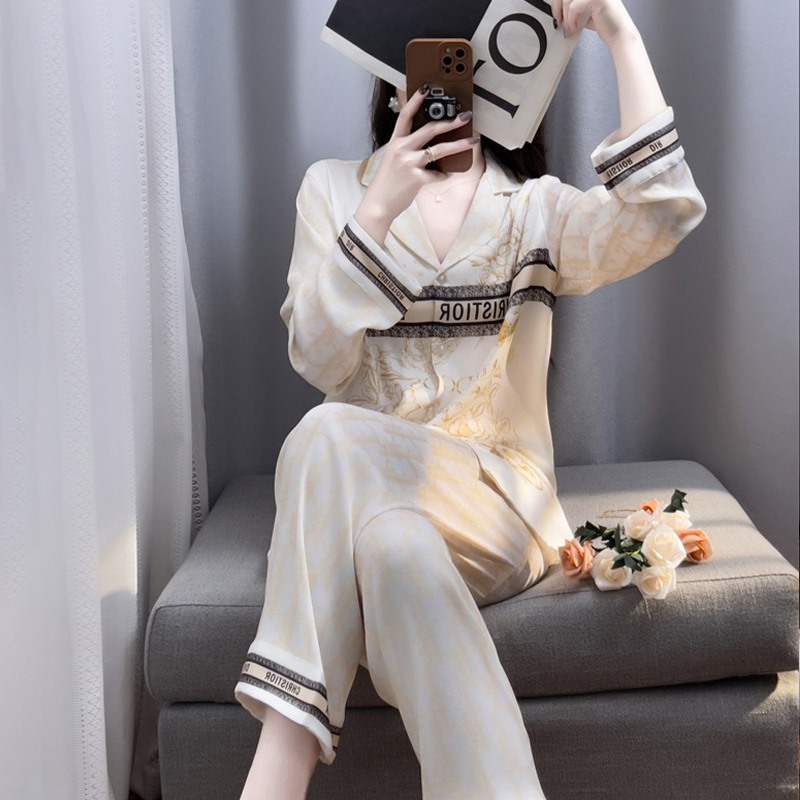 【日本むいひ轻奢】轻奢桑蚕丝睡衣女春秋真丝长袖外穿家居服宽松
