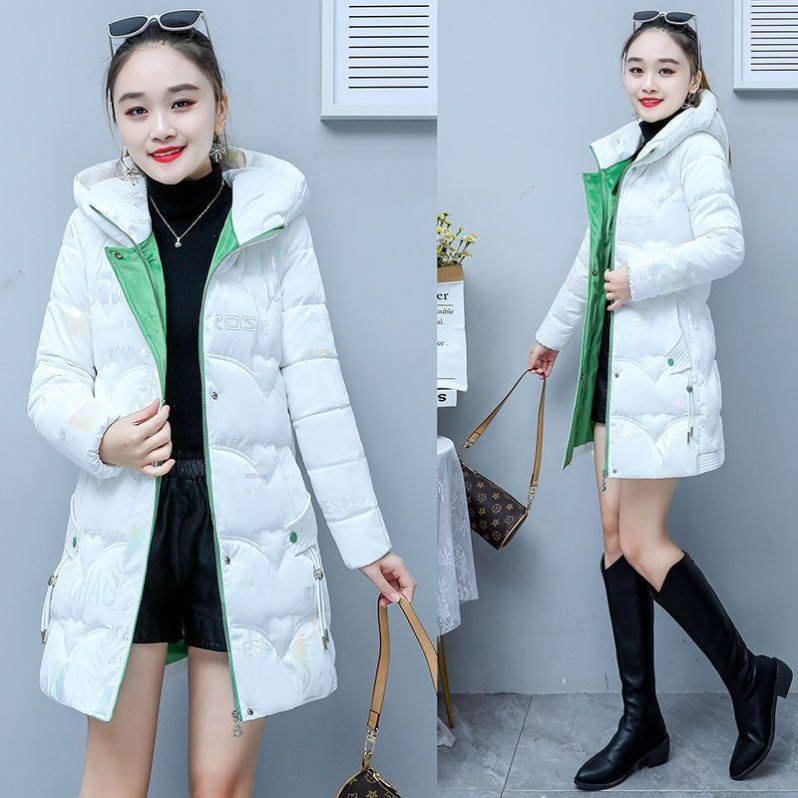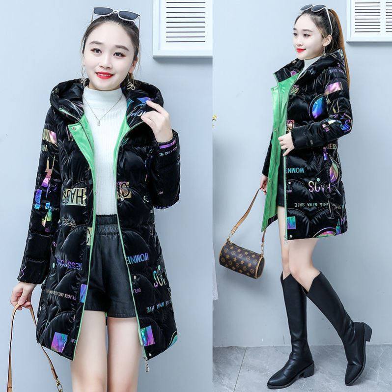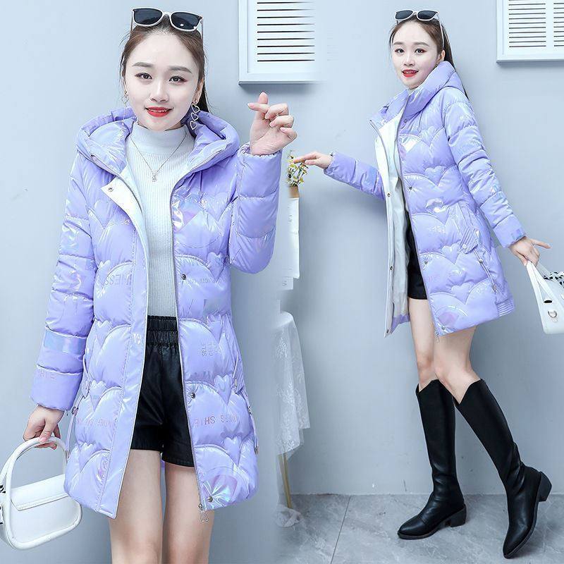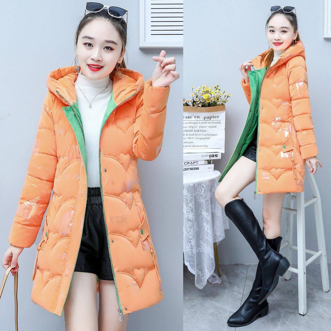 红色亮面羽绒棉服女中长款2023年新款冬装时尚修身百搭棉袄外套潮