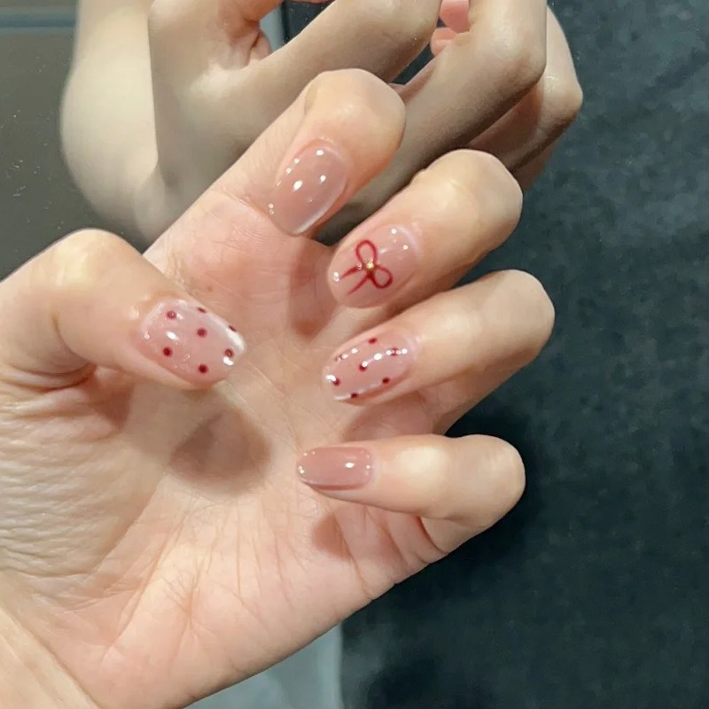 腮红猫眼穿戴甲2024少女甜心爆款手工车厘子显白短指甲成品