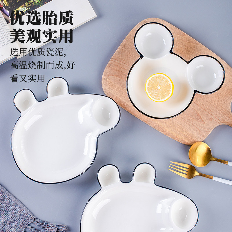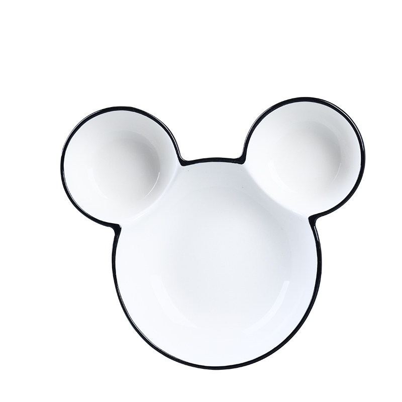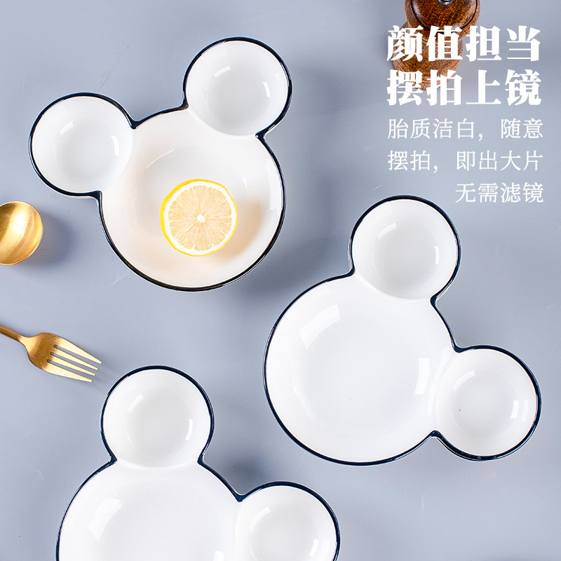 北欧釉下彩盘子家用米奇盘可爱分格盘创意陶瓷儿童餐盘水果盘餐具