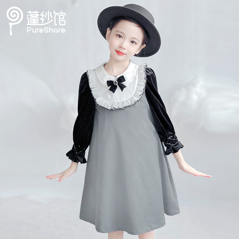 pureshare蓬纱馆 女童连衣裙夏季2025新款丝绒长袖儿童裙子赫本风