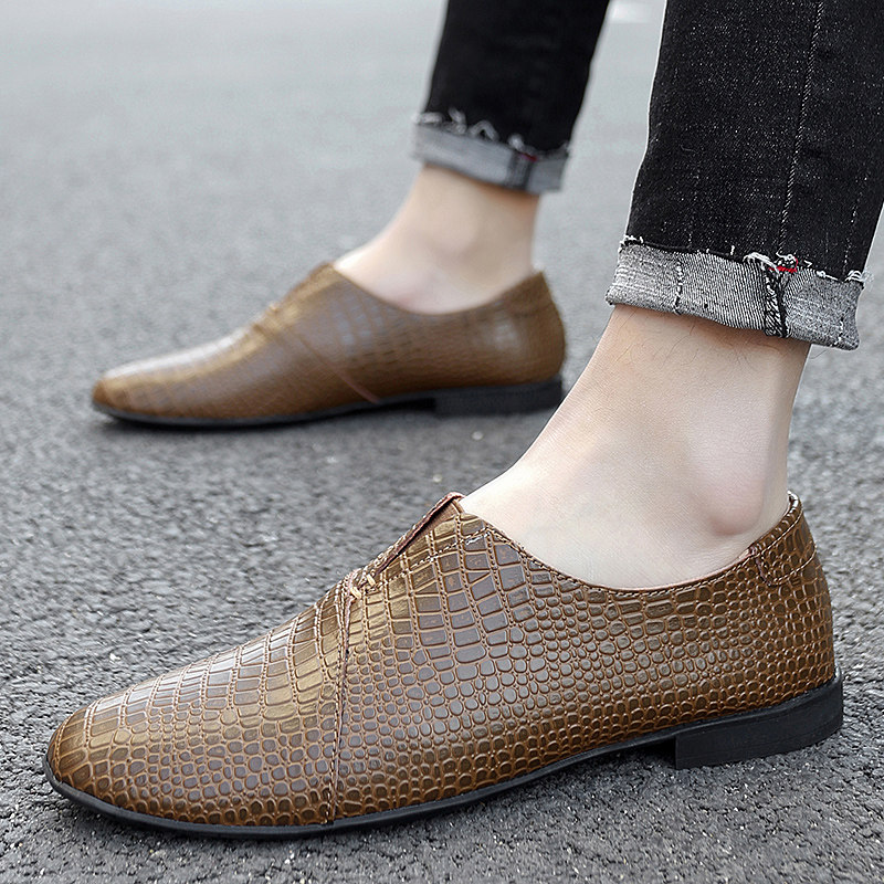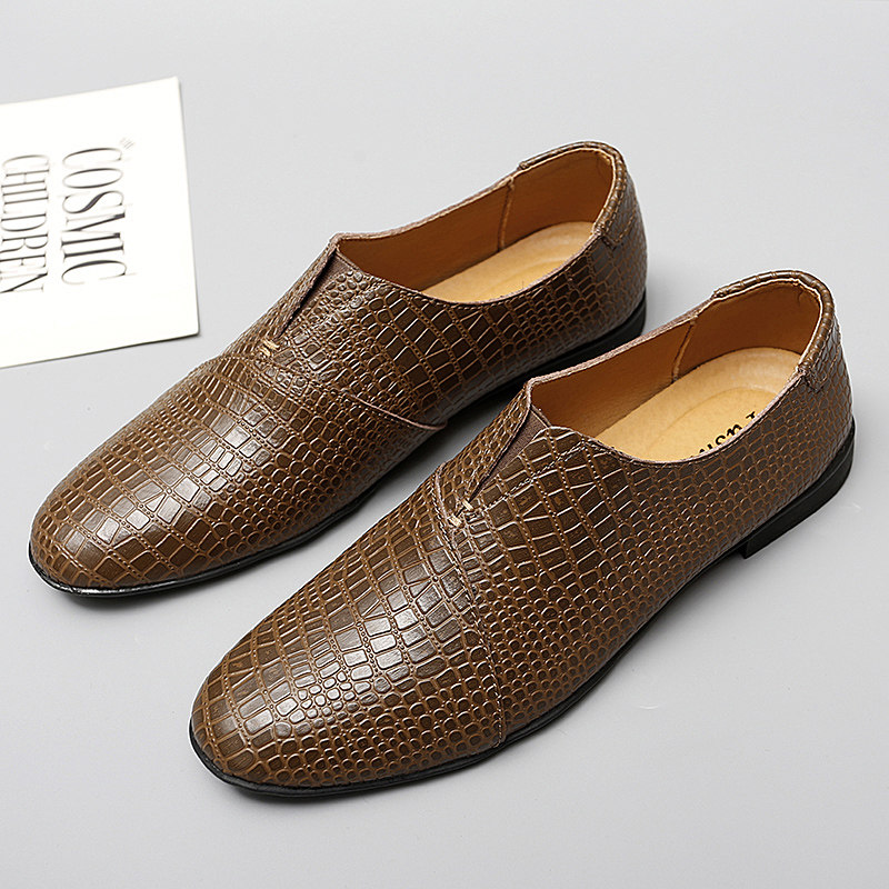 尖头休闲男皮鞋2025新款轻便软低真皮小码时尚潮流一脚蹬豆豆鞋男