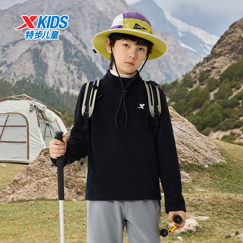 特步童装2025年秋季儿童上衣大童半开襟摇粒绒卫衣秋装男童长袖T