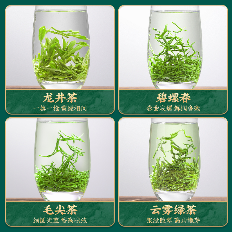 龙井茶绿茶2025新茶碧螺春高山云雾毛尖茶四大绿茶茶叶礼盒装500g
