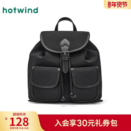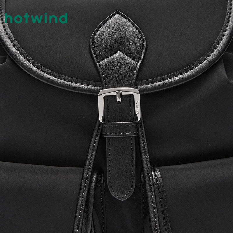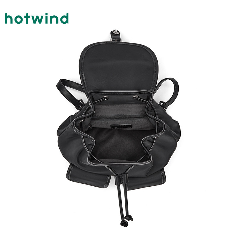 热风女士包包2025年秋季新款翻盖抽绳口袋装饰学院风大容量双肩包