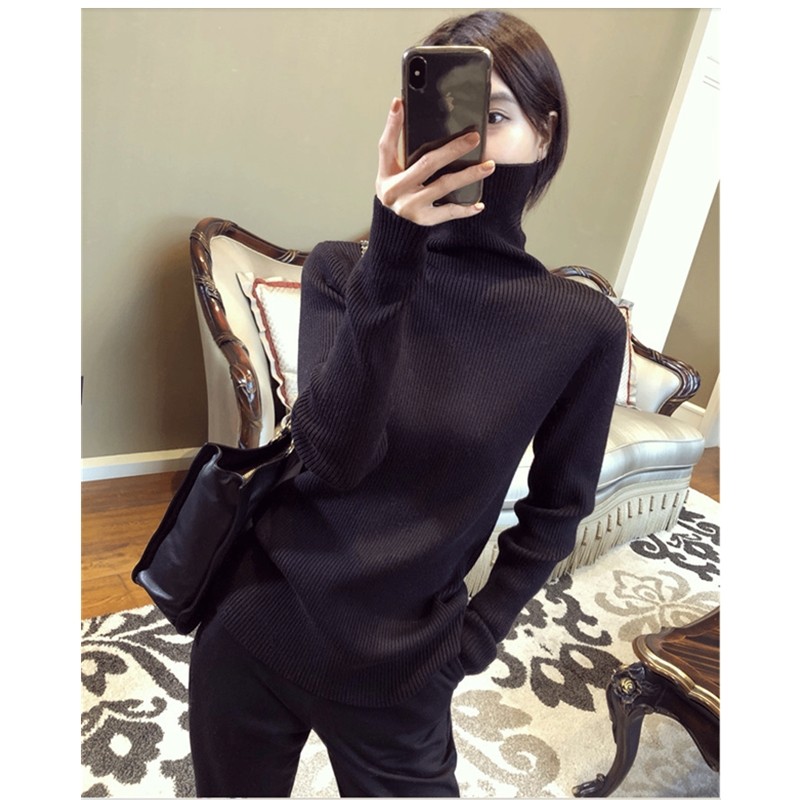 欧货加厚修身套头堆堆领高领羊毛衫针织打底衫女毛衣洋气内搭长袖
