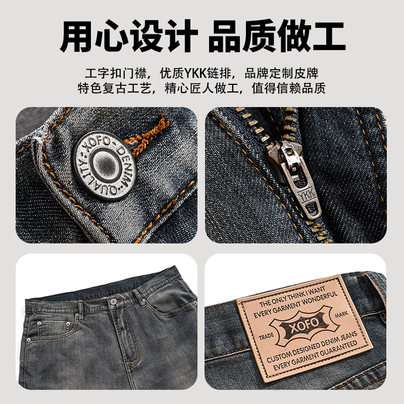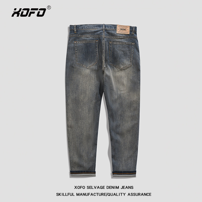 夏季冰丝薄款黄泥染男款锥形小脚九分裤休闲宽松美式复古牛仔裤子