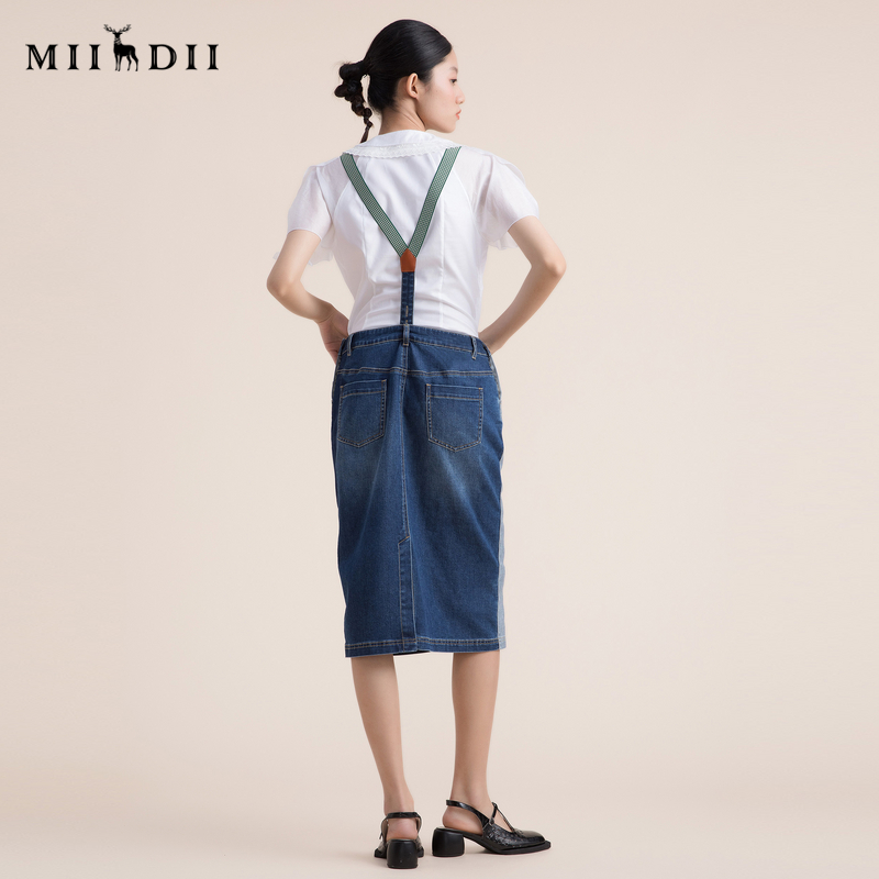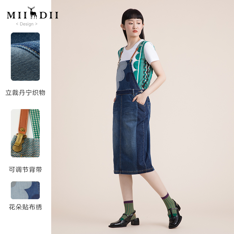 谜底牛仔背带裙2022夏季新款学院减龄贴布绣中长半裙222MB0523