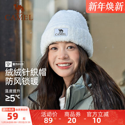 骆驼秋冬针织毛线帽女百搭护耳羊毛保暖冷帽加厚防风大头围帽子