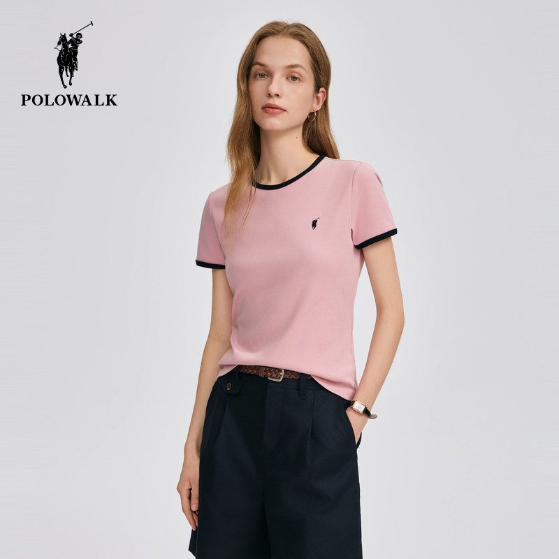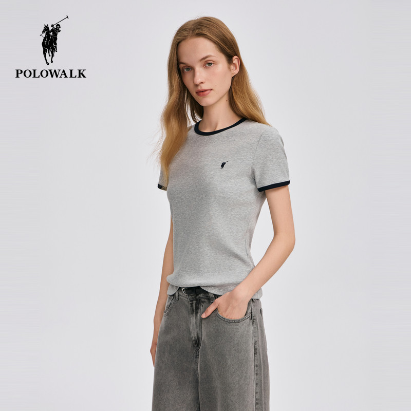 POLOWALK女装2025夏季新品女式短袖圆领T恤简约百搭短袖t恤女薄款