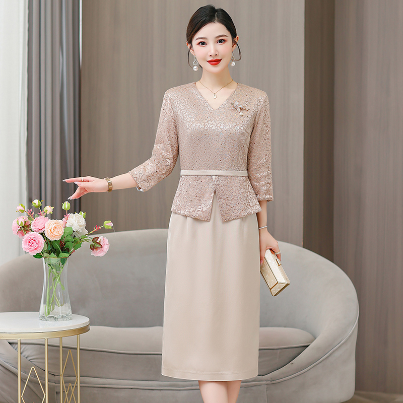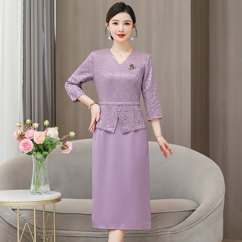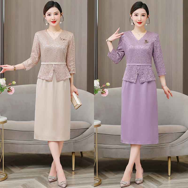 喜婆婆婚宴装新中式国风长袖妈妈连衣裙女春夏新款洋气质旗袍裙子