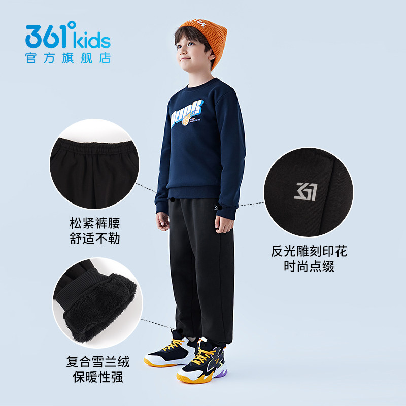 361童装 男童加绒长裤2023年冬季新款中大童雪兰绒保暖休闲运动裤