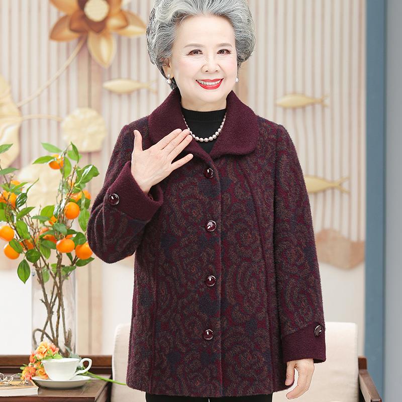奶奶春秋装宽松外套70岁妈妈装彷貂绒衣服老太太老人老年人上衣女