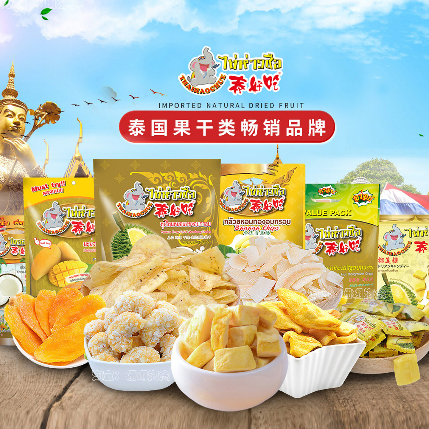泰国水果干泰好吃榴莲干芒果腰果椰子香蕉高品质素食零食伴手礼品
