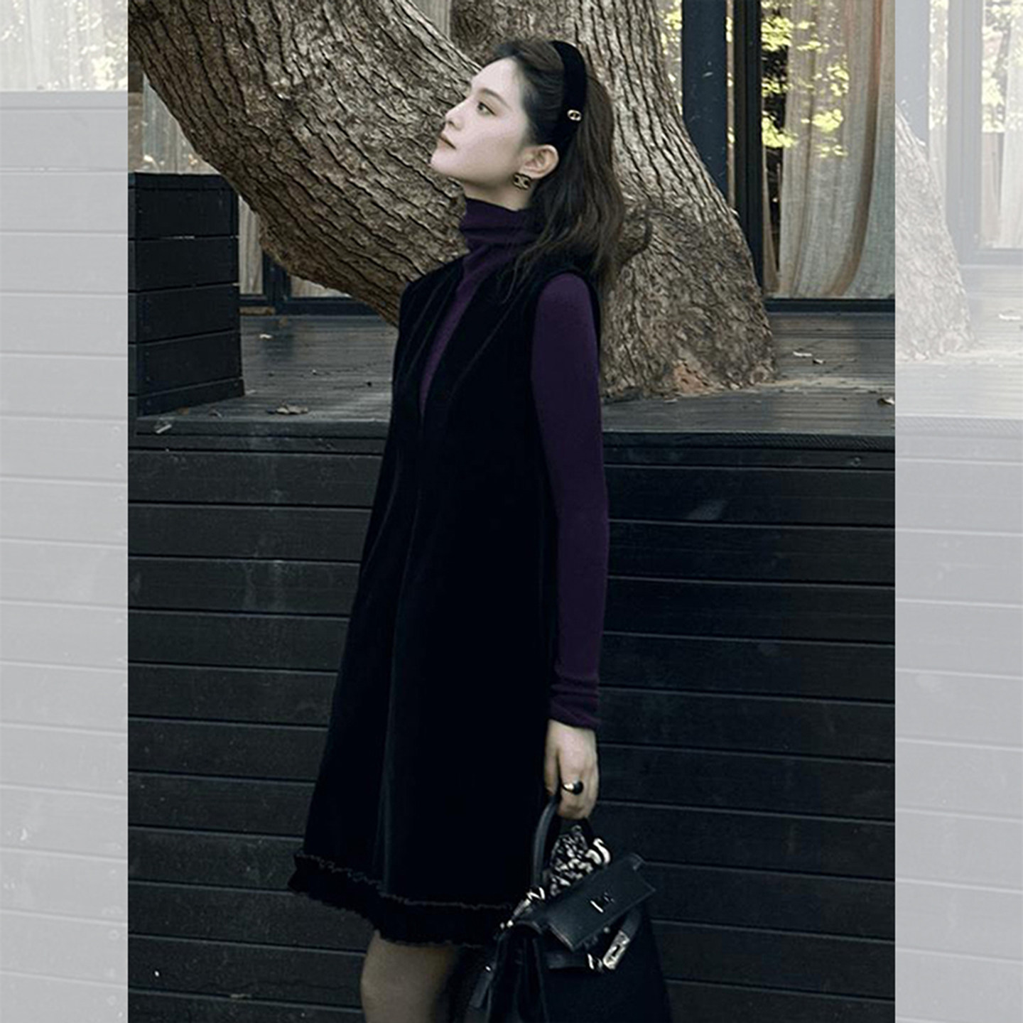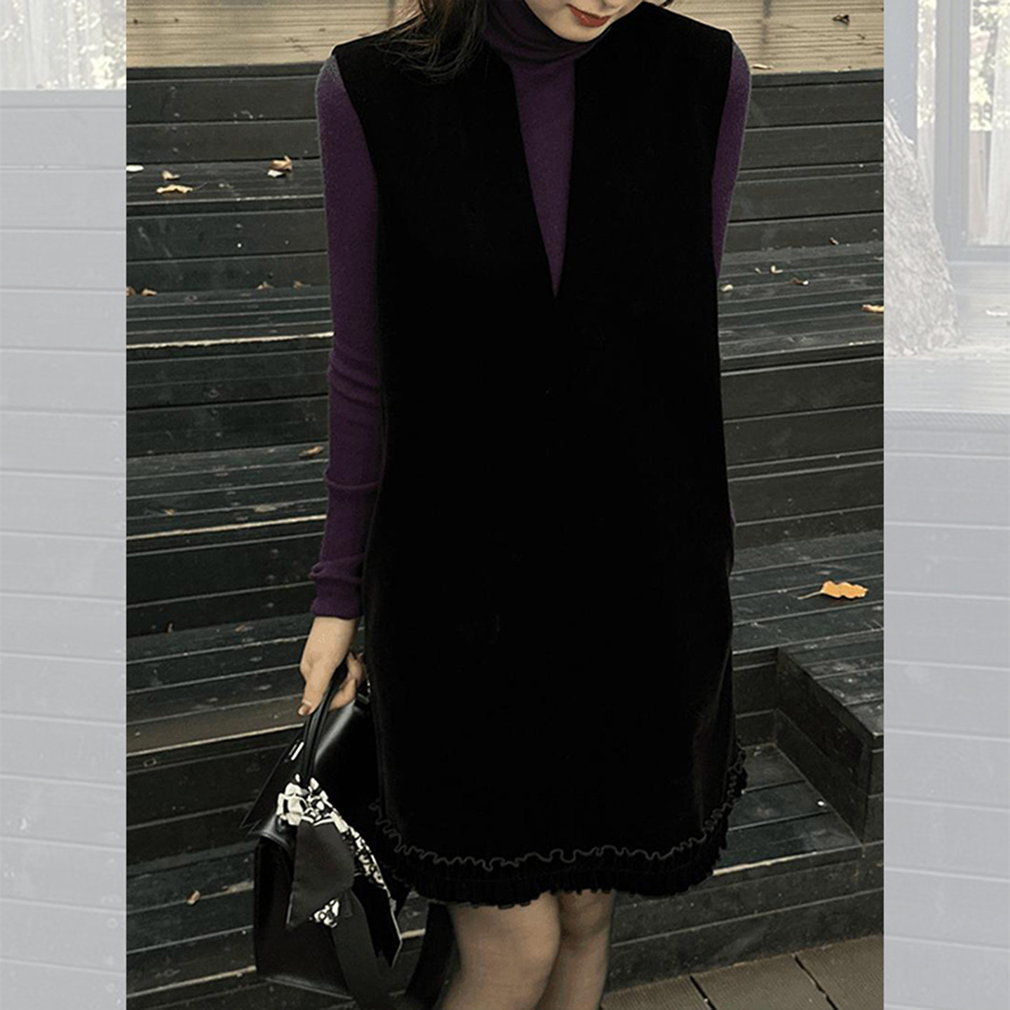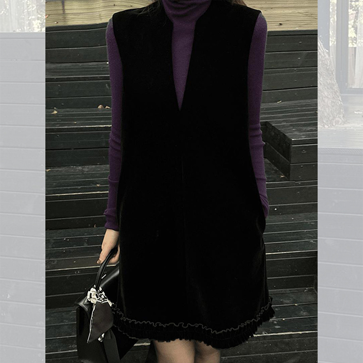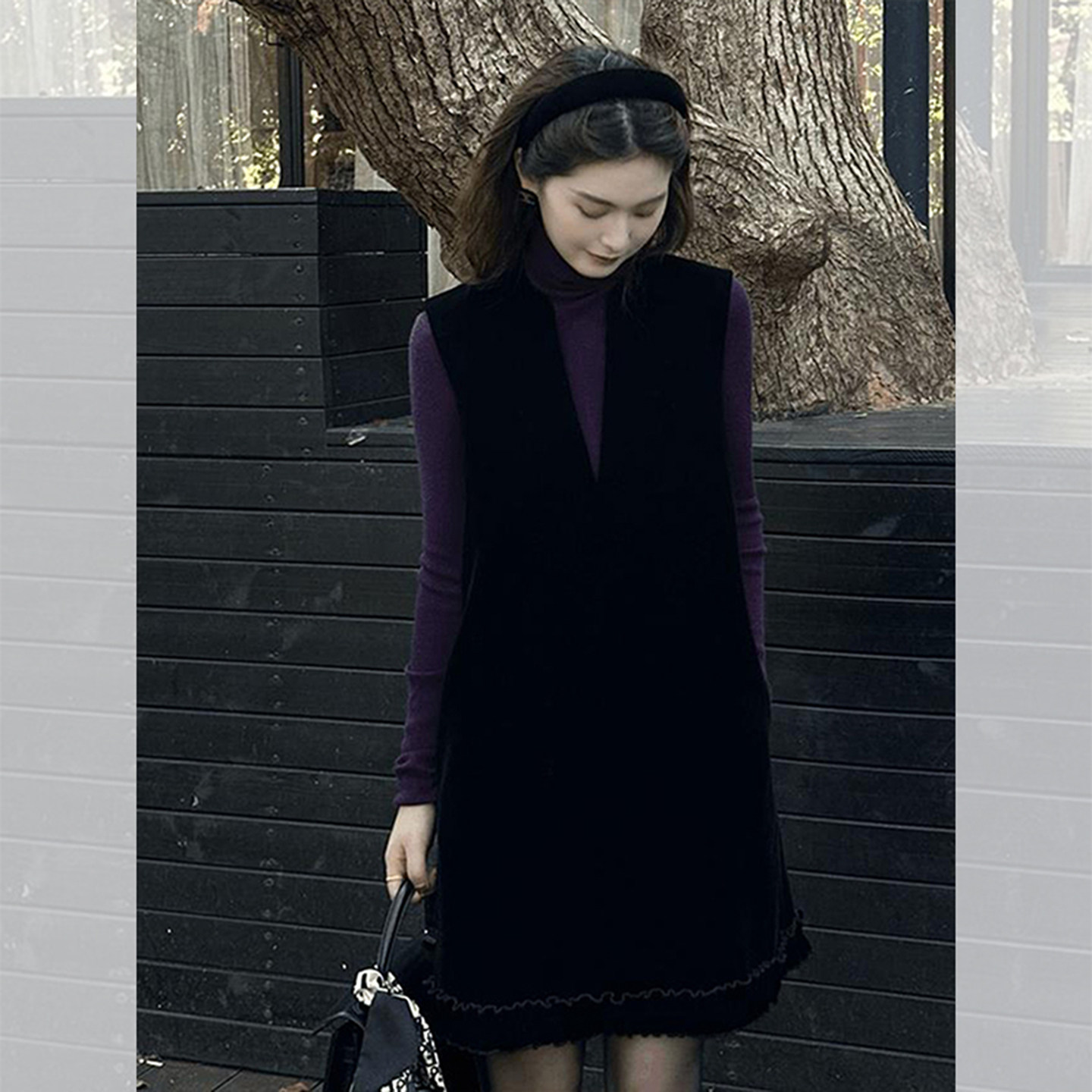 巨好看的背心连衣裙女秋冬新款时尚厚款叠穿高领长袖黑色A字短裙