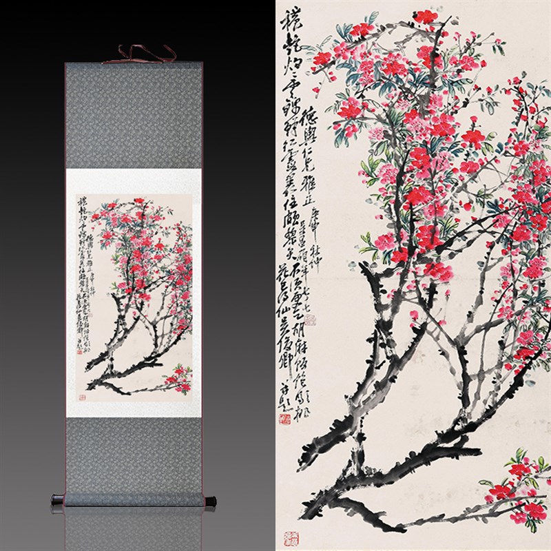 春暖花开竖幅国画卷轴画吴昌硕花鸟画过画桃花开风水挂画礼品挂画