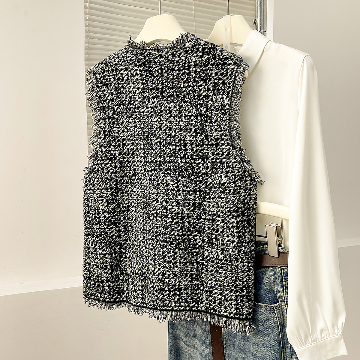 唐狮2025秋冬毛线衫马甲小香风毛边设计开衫女春秋外穿高级感上衣