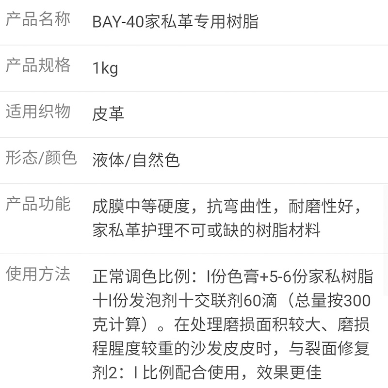 洁宝家私革专用树脂1KG 家具真皮沙发汽车坐垫皮面上色清洁保养
