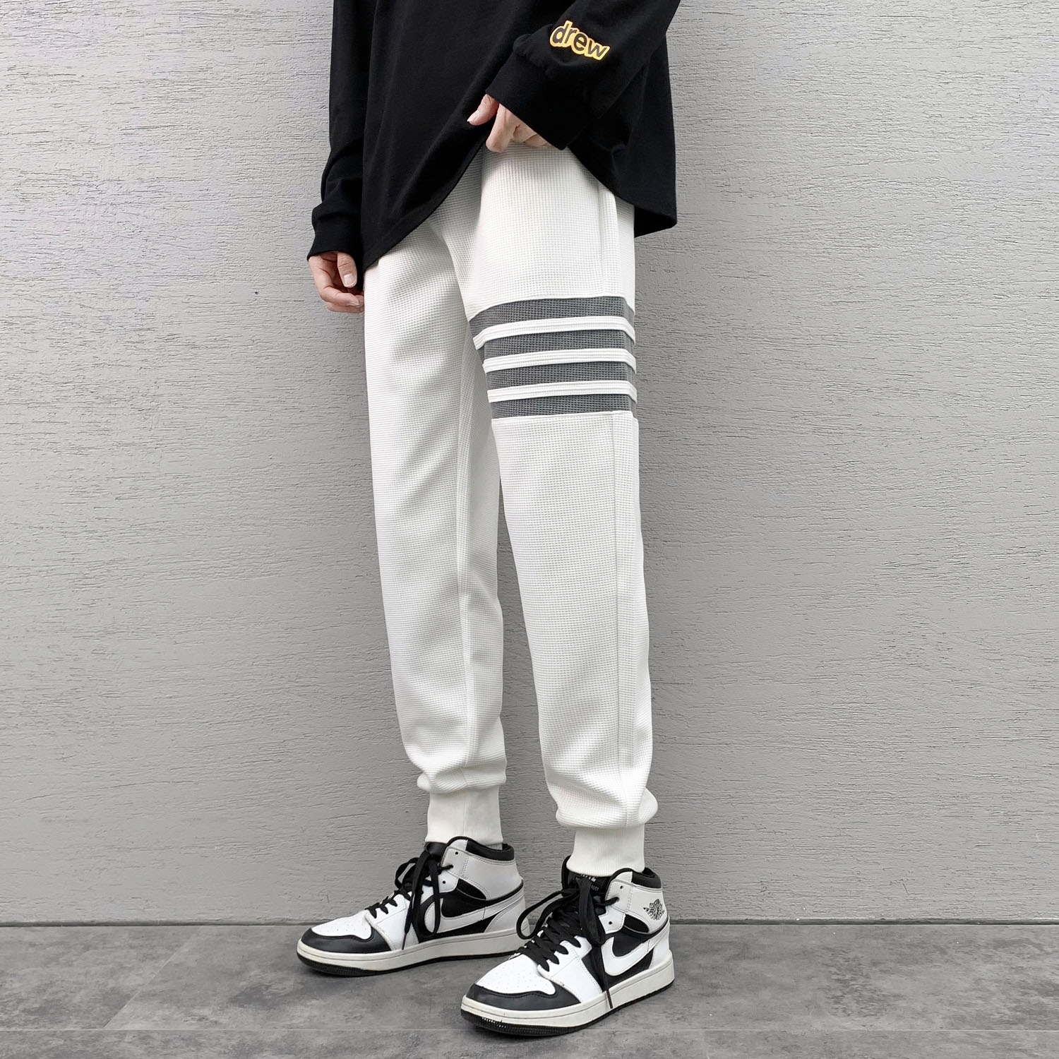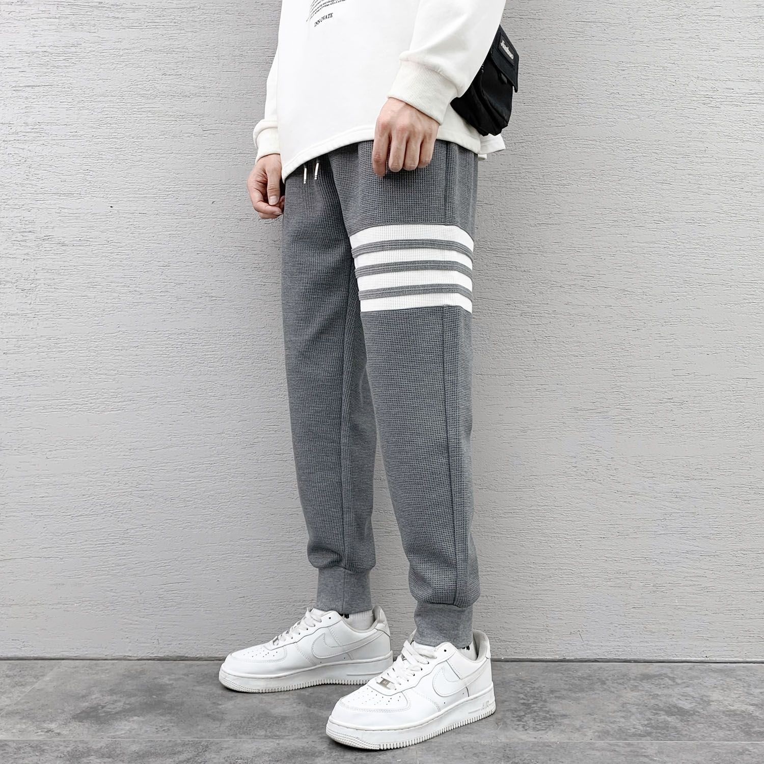 华夫格裤子男士秋季新款灰色加绒运动休闲长裤宽松男生潮牌卫裤子