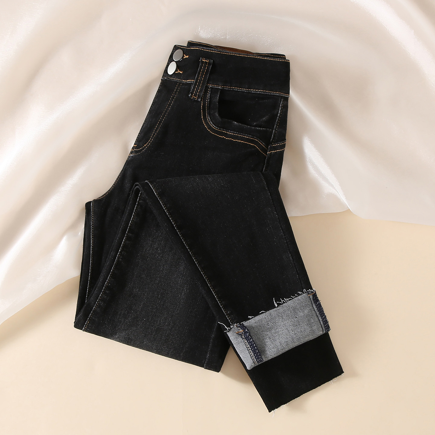 复古高腰显瘦小脚铅笔牛仔裤女