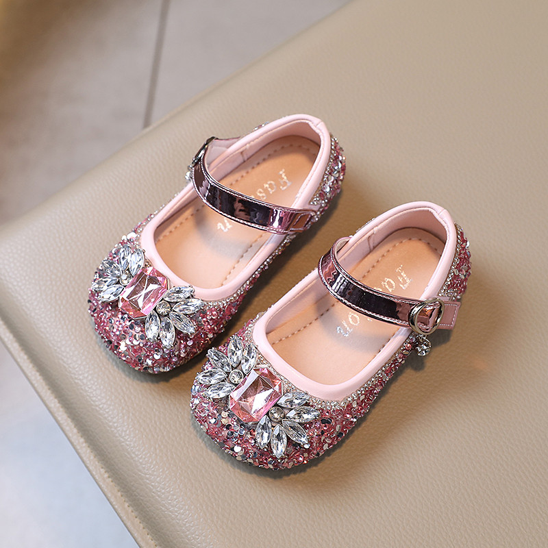 女童皮鞋2025春秋季新款小香风儿童单鞋子宝宝洋气软底水晶公主鞋