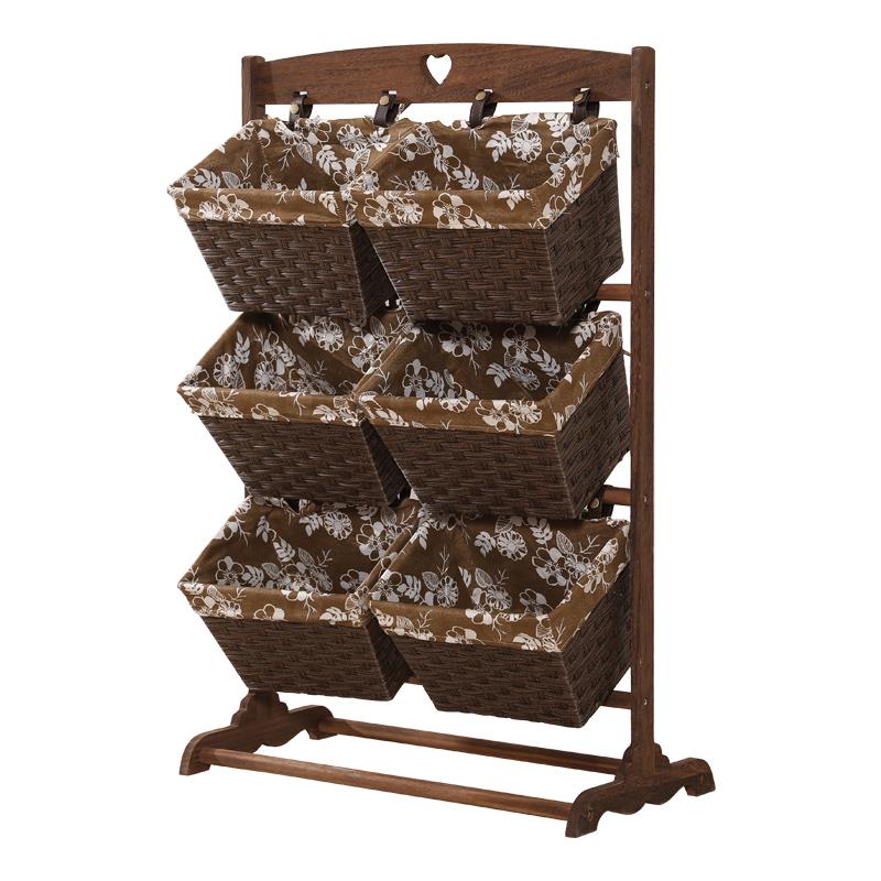 实木收纳架藤编杂物零食整理筐门客厅落地多层布艺吊篮储物置物架