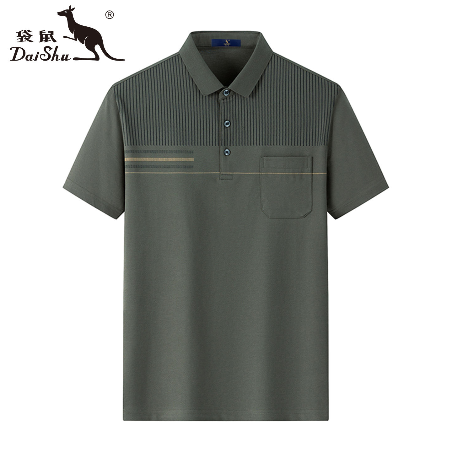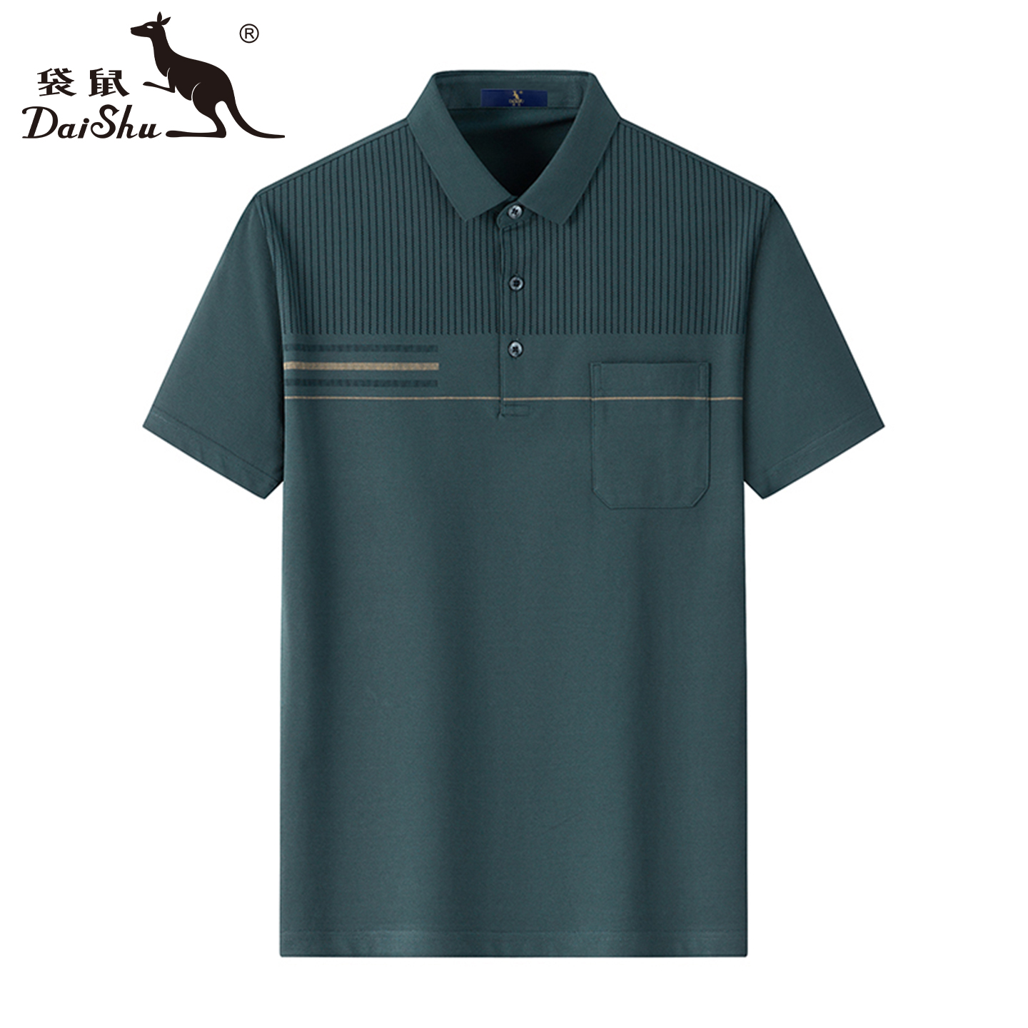 袋鼠男士短袖t恤夏季新款丝光棉条纹polo衫休闲透气翻领爸爸上衣