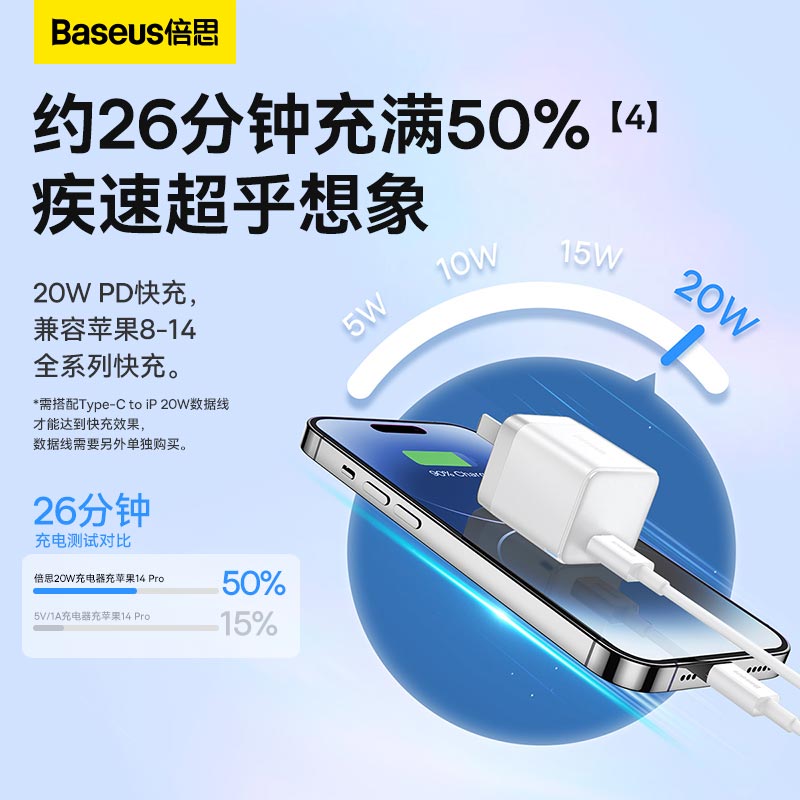 倍思20W氮化镓适用苹果充电器iPhone15Promax充电头14快充头pd手机ipad快速mini闪充数据线13套装typec插头