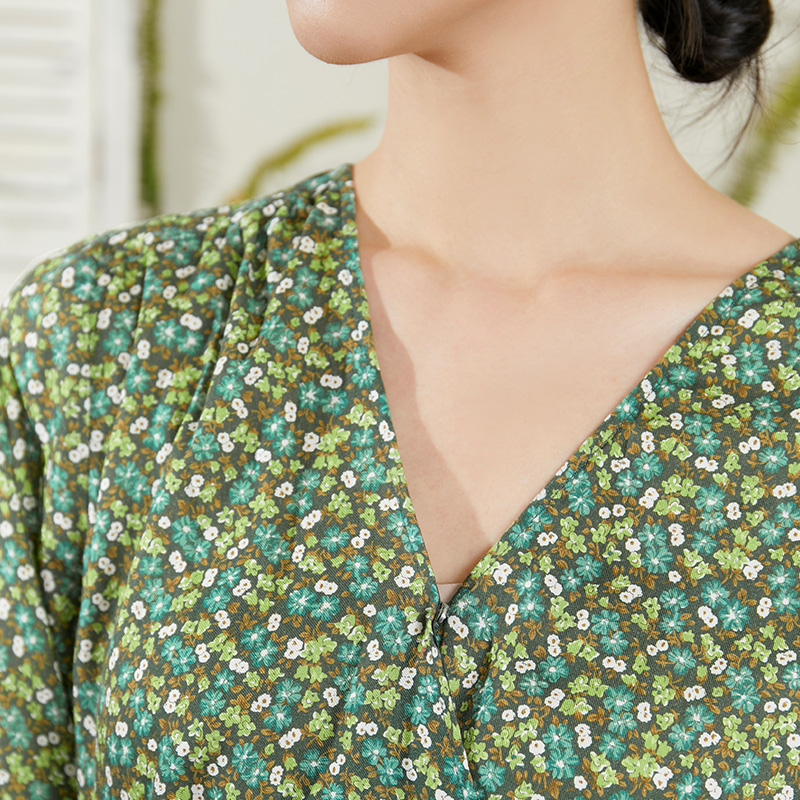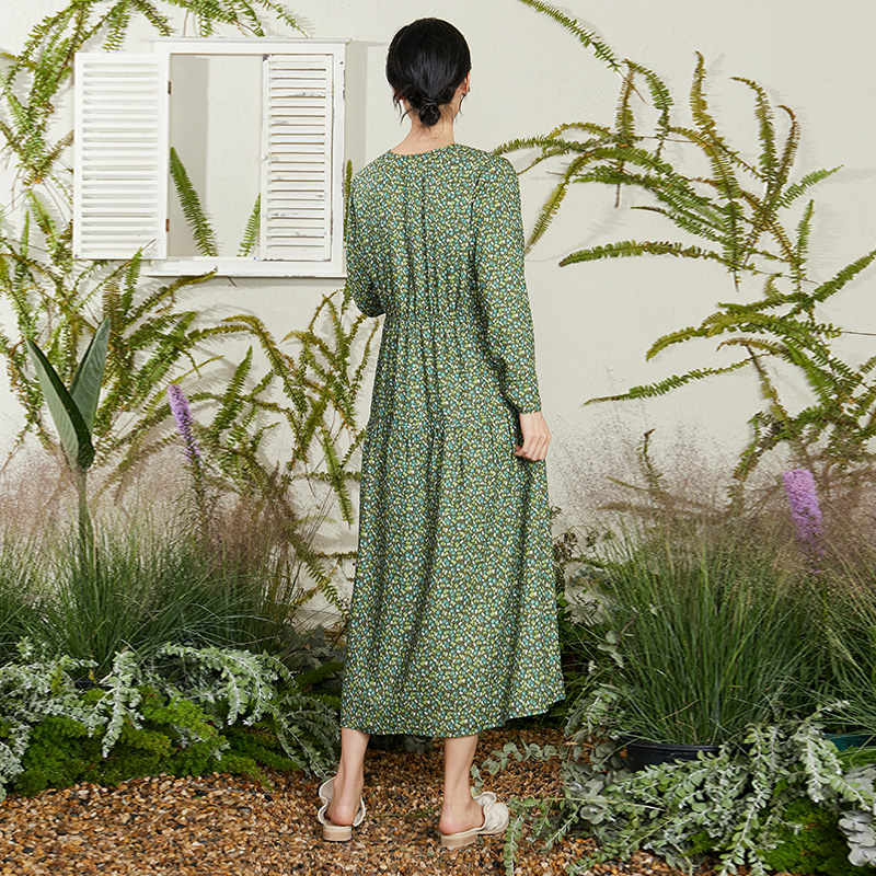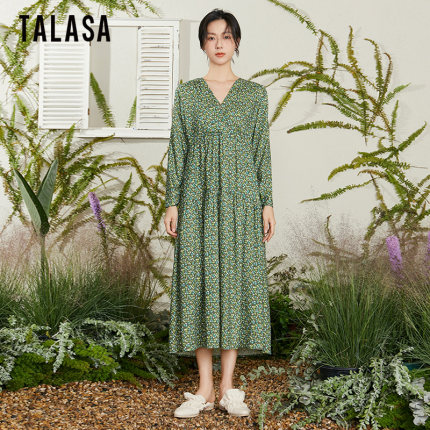 TALASA小碎花印花连衣裙2025年春夏新款法式复古收腰显瘦优雅长裙
