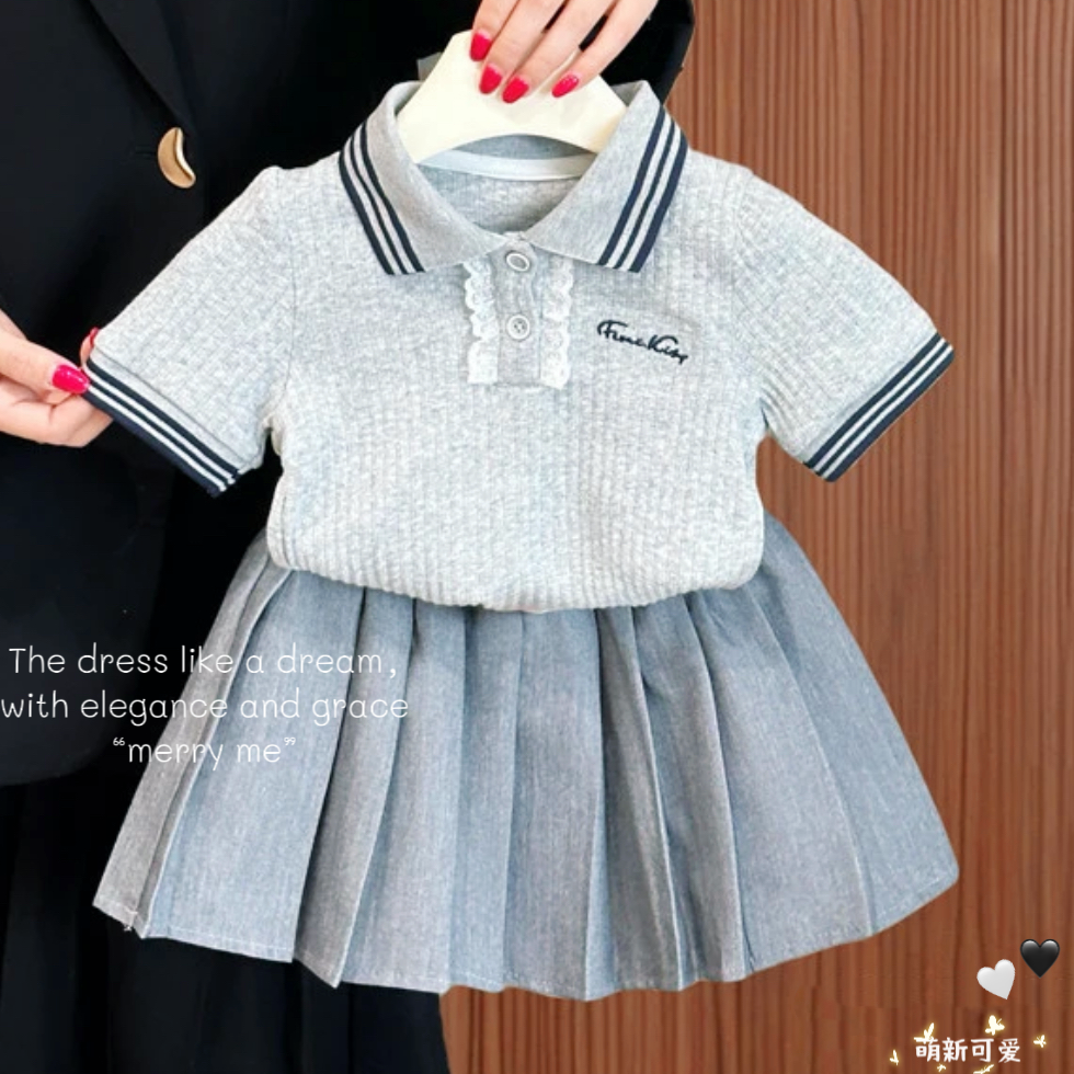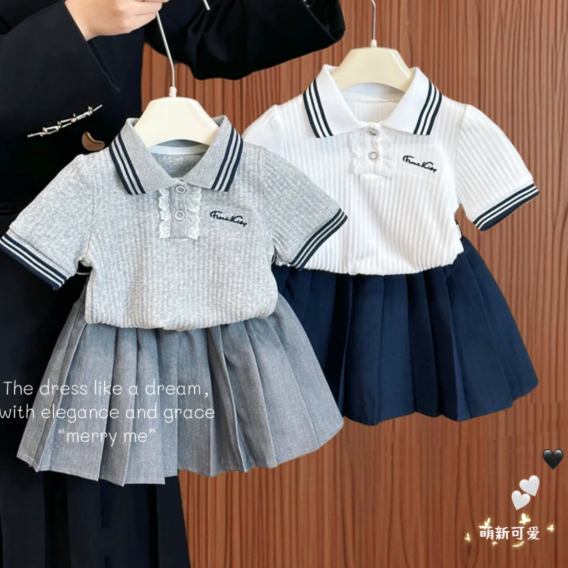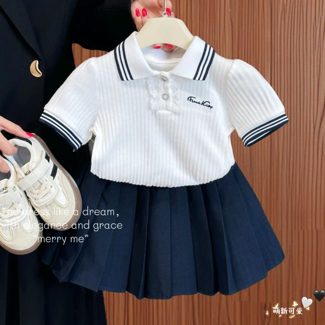 女童夏季翻领T恤2025新款儿童学院风Polo衫宝宝洋气短袖百搭上衣
