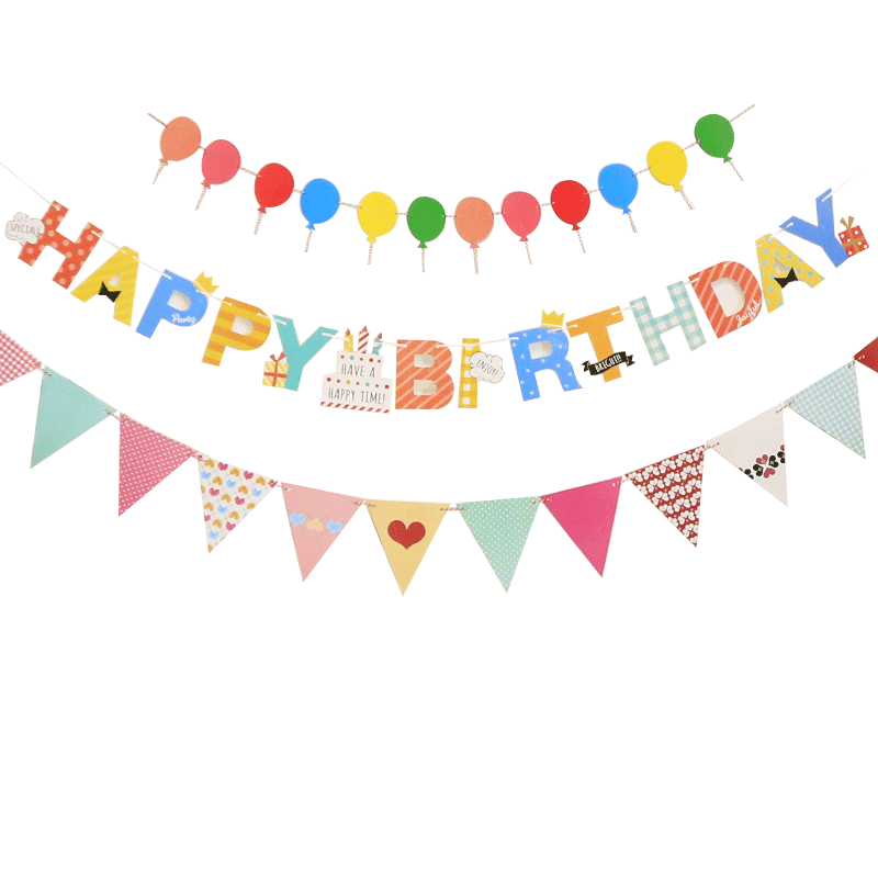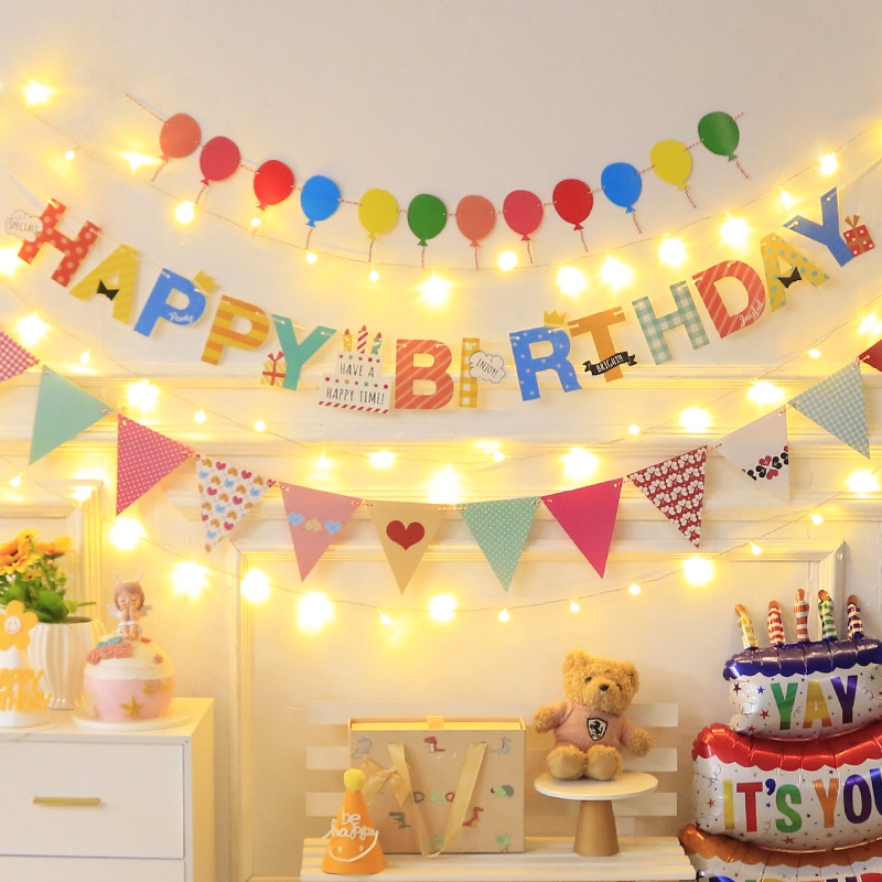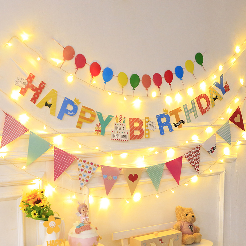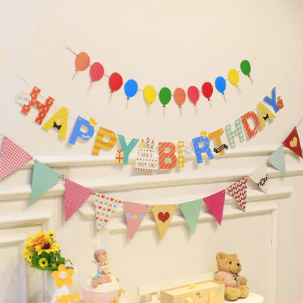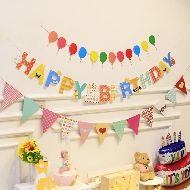 生日快乐拉旗派对装饰场景布置周岁男孩女孩儿童背景墙彩旗挂旗