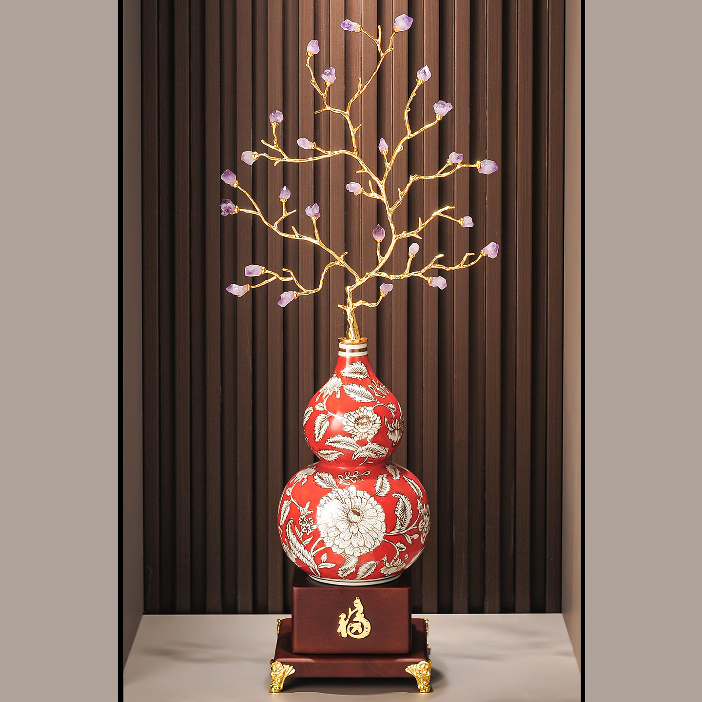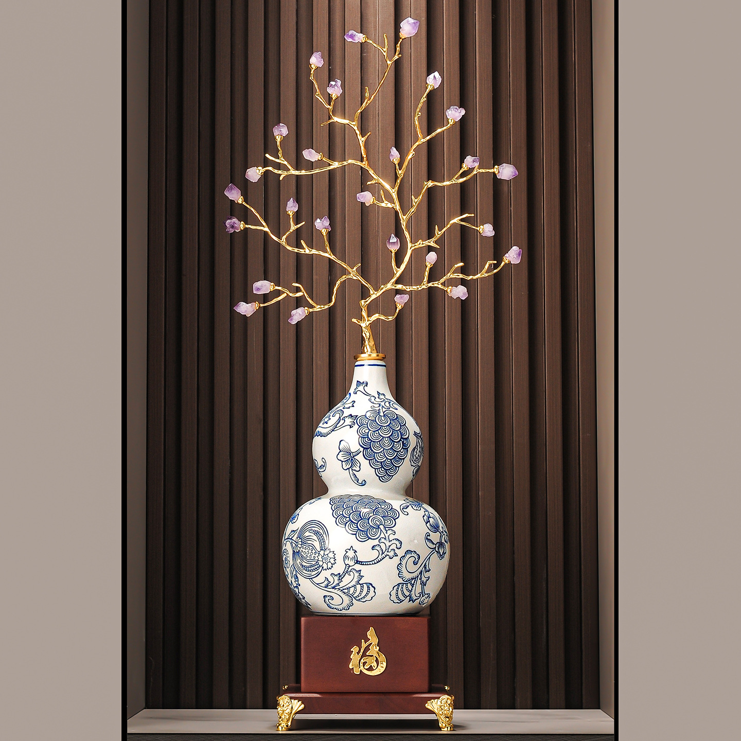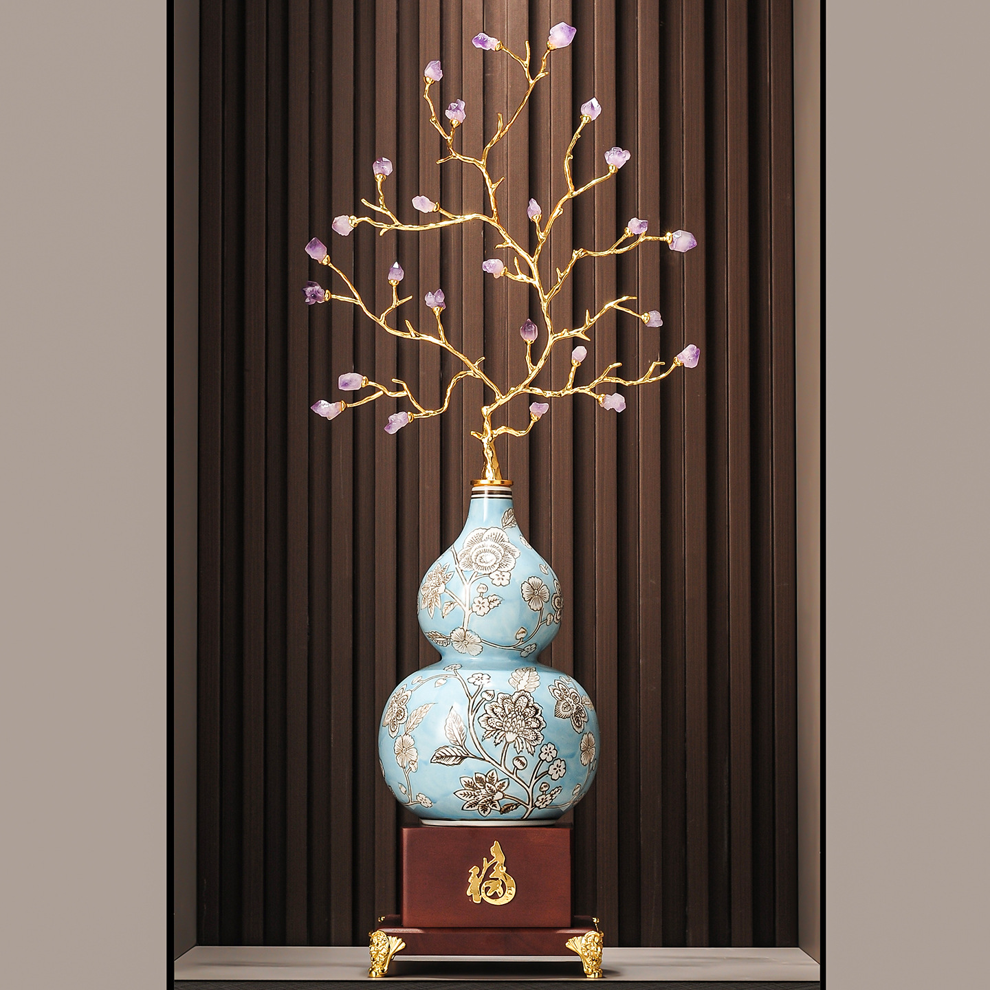 珐琅彩金箔葫芦摆件高档发财树客厅电视柜酒柜乔迁新居礼品装饰品