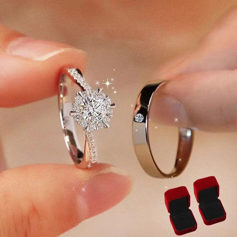高端六爪仿真钻戒女简约时尚情侣款莫桑石求婚结婚开口戒指
